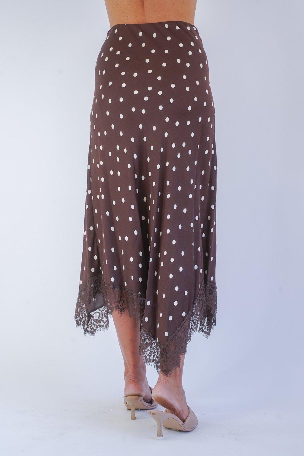 Dámská áčková asymetrická sukně s krajkou Imperial Fashion je výrazný a zároveň velmi ženský kousek, který zaujme elegantním puntíkovaným vzorem, lehkostí materiálu a romantickými krajkovými detaily. Sukně krásně splývá, jemně se pohybuje při chůzi a díky áčkovému střihu lichotí postavě. Asymetrický spodní lem doplněný krajkou dodává modelu originální a sofistikovaný vzhled, který využijete na běžné nošení i slavnostnější příležitosti. Tato dámská sukně Imperial Fashion se skvěle kombinuje s jednoduchým topem i elegantní halenkou, přičemž v nabídce máme také saténovou halenku do kompletu pro dokonale sladěný outfit.