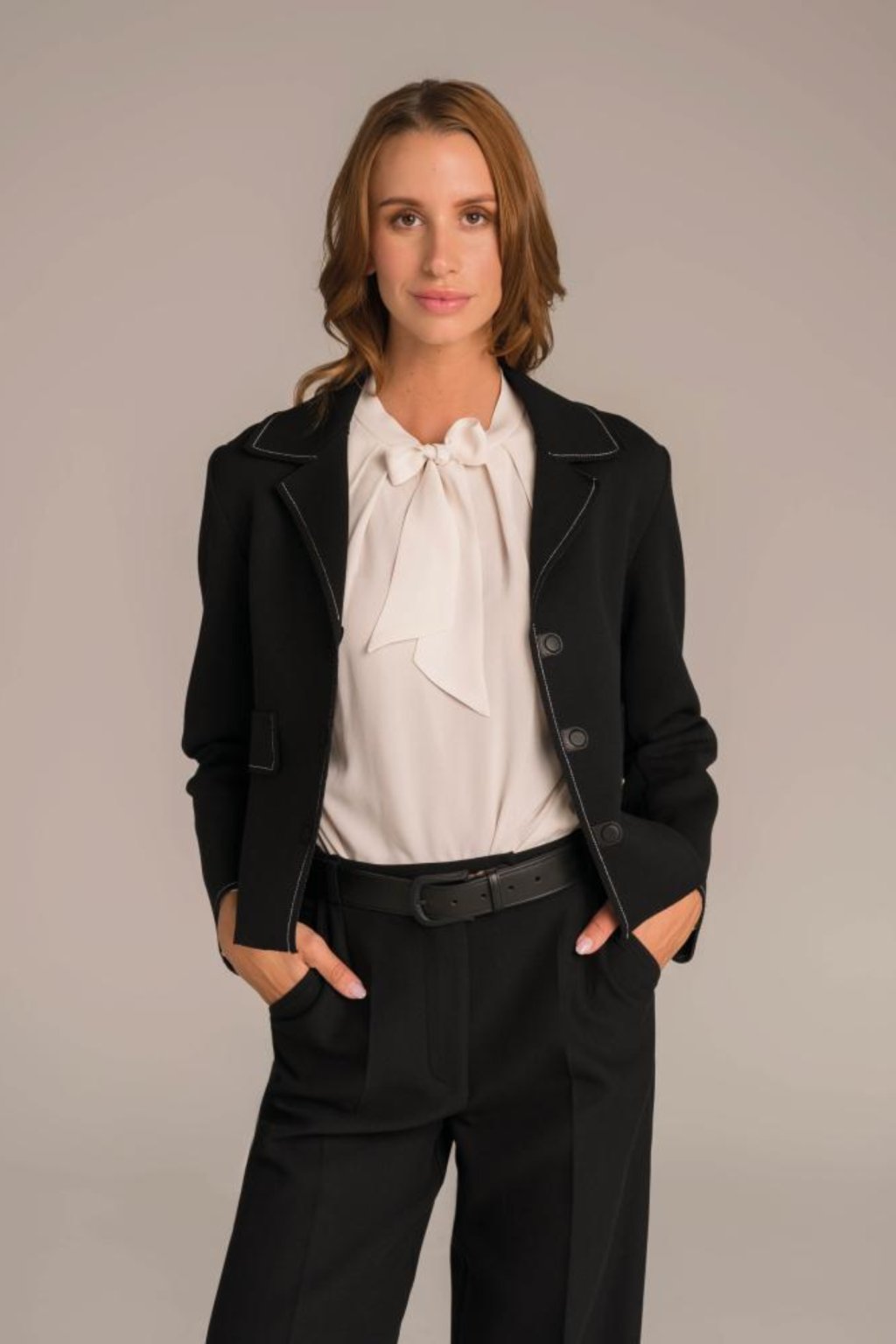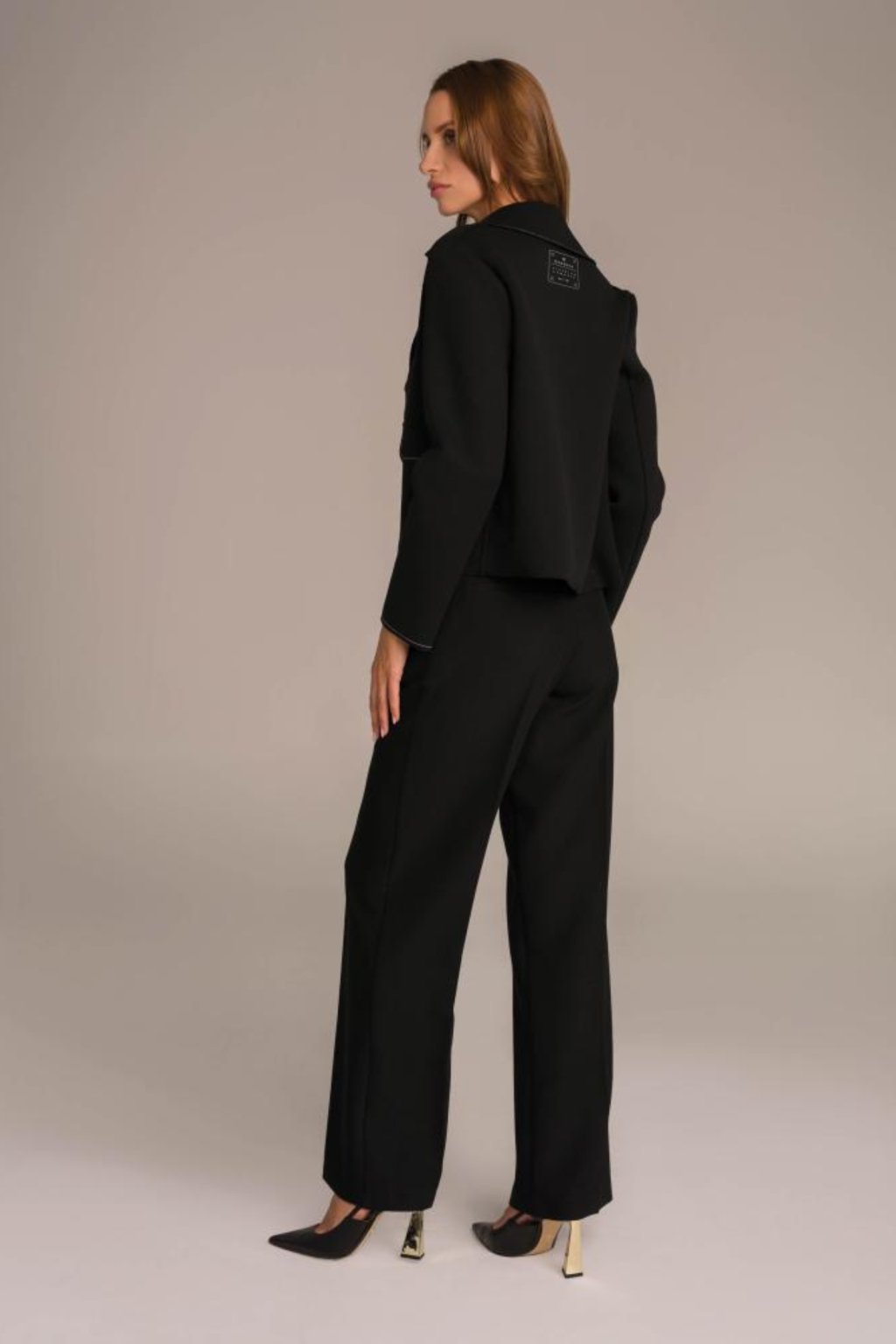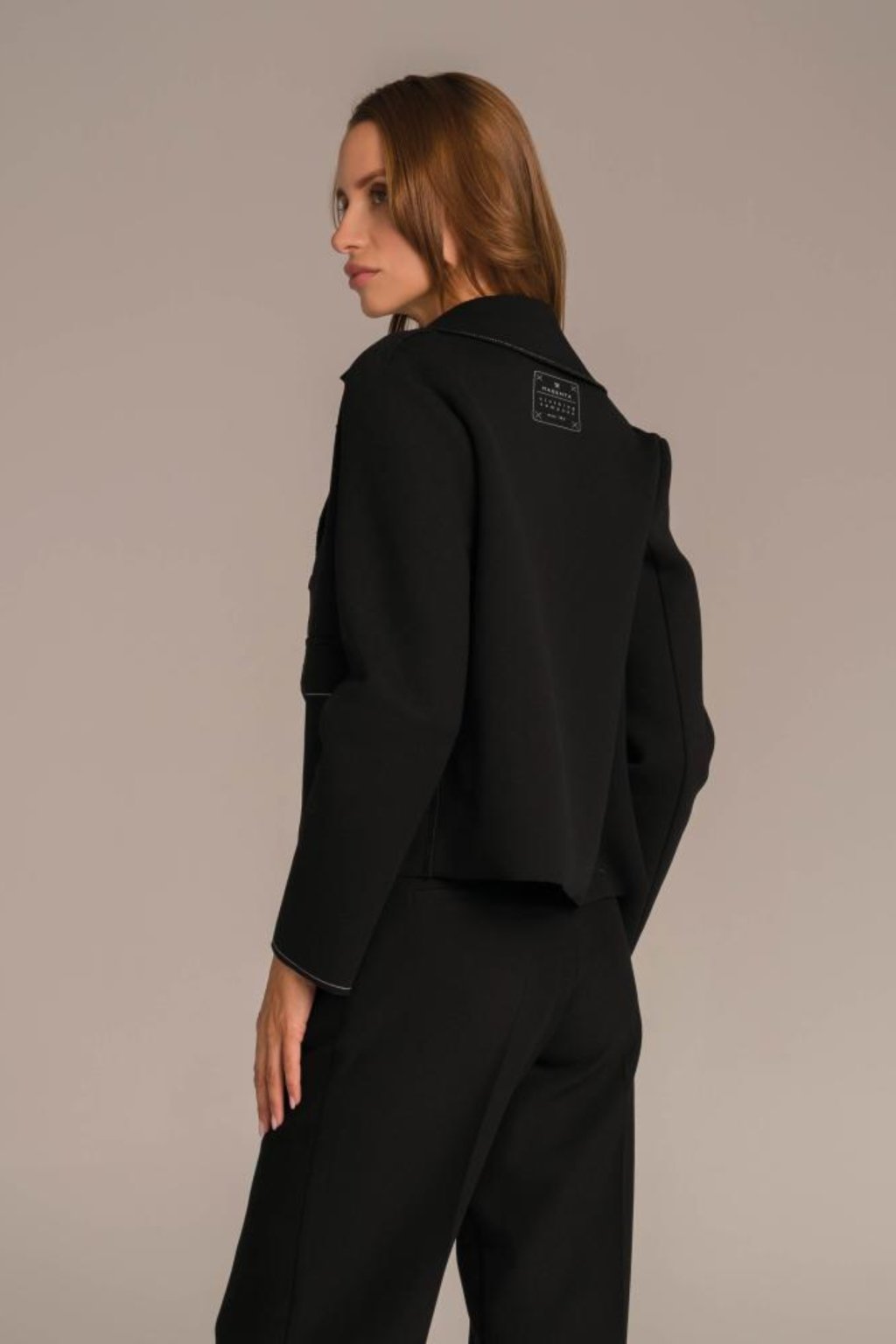Dámská bunda Magenta v elegantním černém provedení představuje moderní kombinaci ležérního a business stylu. Díky kvalitnímu neoprénovému materiálu a propracovaným detailům působí luxusně, ale zároveň zůstává pohodlná pro každodenní nošení. Výrazné kontrastní prošití dodává bundě originální vzhled, zatímco rovný střih lichotí postavě. Stylový límec, zapínání na knoflíky a dvě přední kapsy podtrhují minimalistický, ale promyšlený design. Na zadní straně je decentní logo značky Magenta, které potvrzuje prémiovou kvalitu modelu. Perfektní volba k elegantním kalhotám i džínám, ideální pro podzimní a přechodové období.