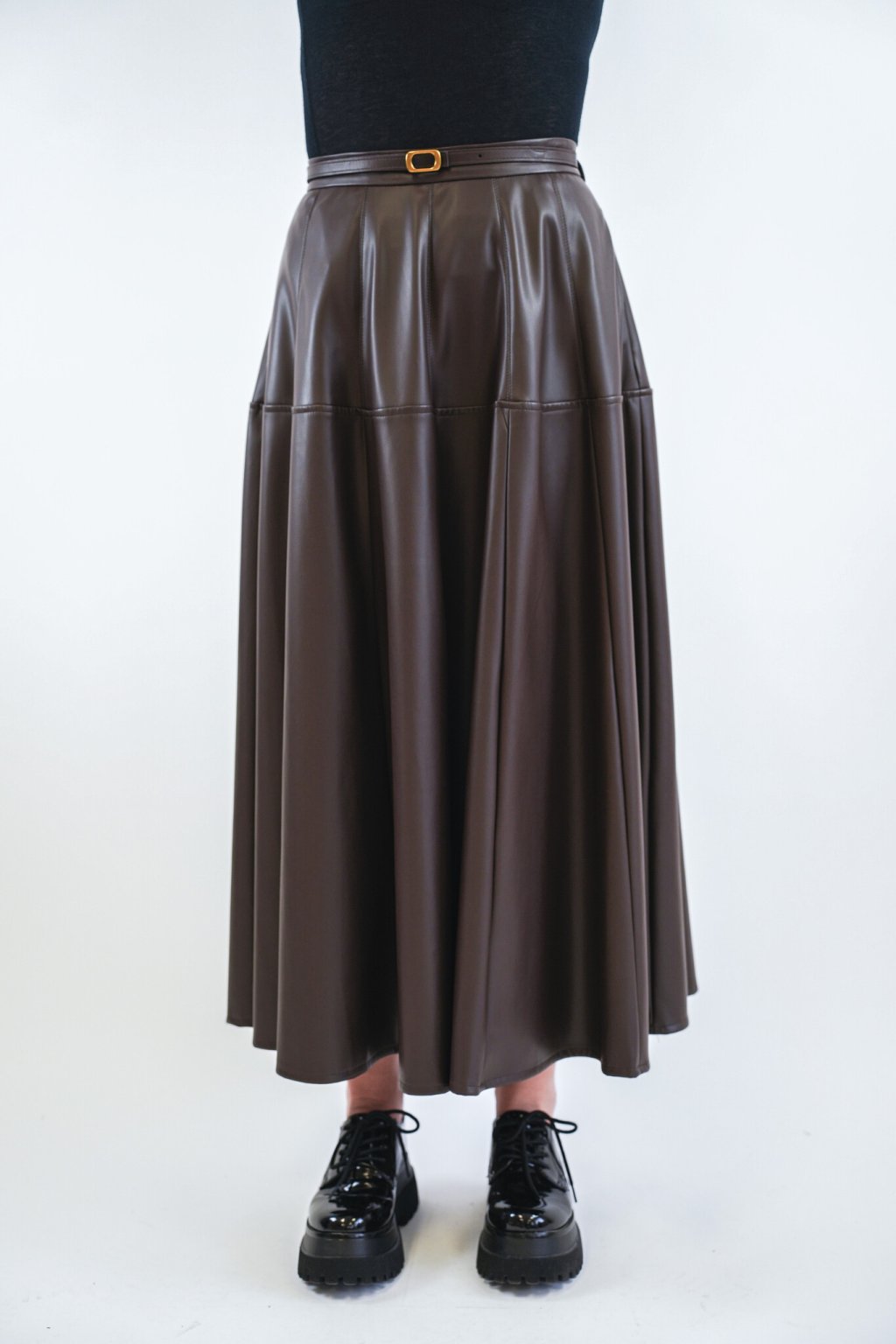 Dámská kolová sukně Imperial koženka hnědá
