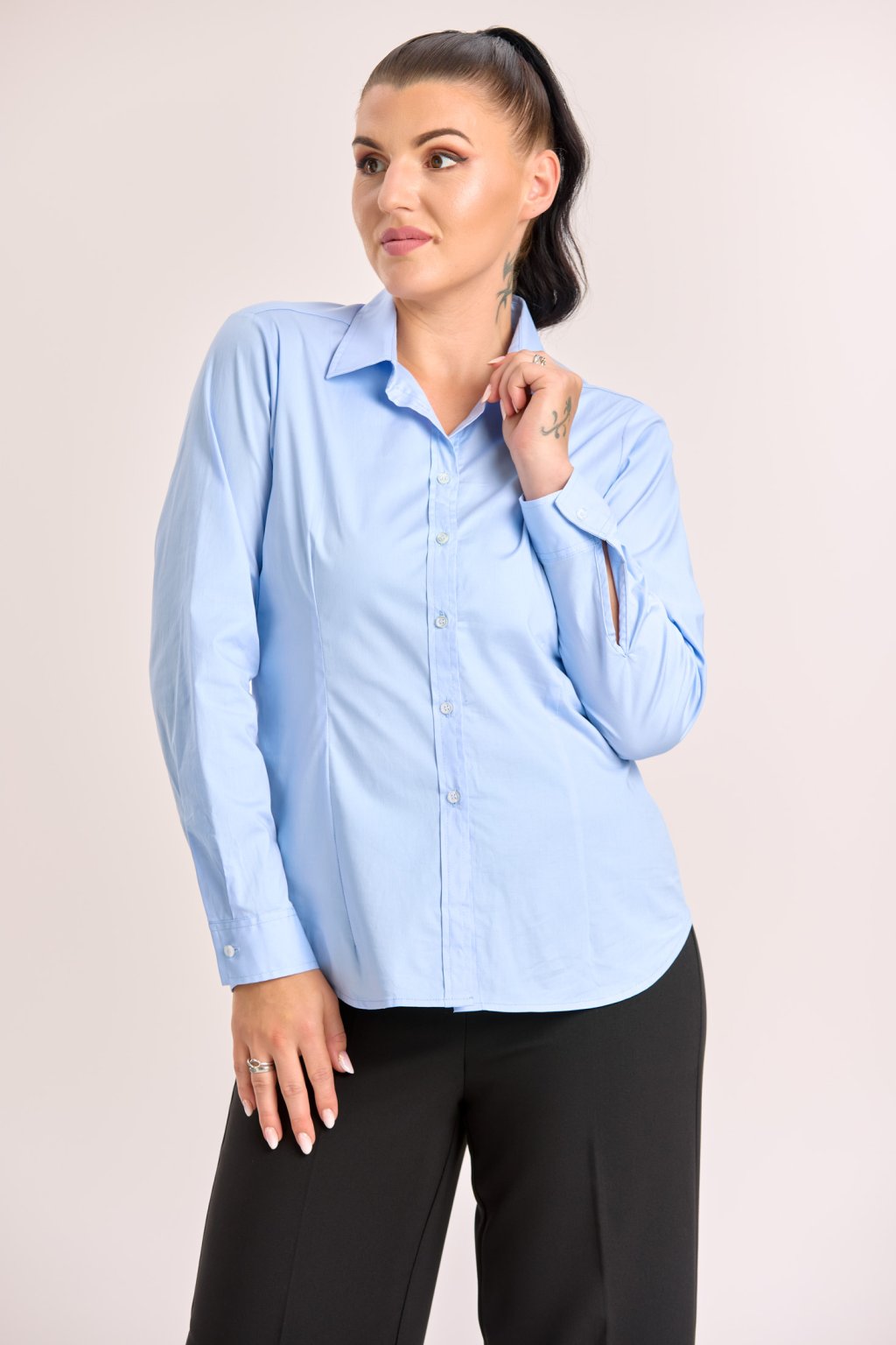 Dámská vypasovaná košile značky Gianinno je elegantní základ šatníku, který využijete do práce i pro volnočasové kombinace. Díky podílu elastanu krásně sedí na postavě a působí žensky, zatímco bavlna zajišťuje příjemný pocit při nošení. Košile je lehce menší, proto doporučujeme volit vždy o jednu velikost větší, než obvykle nosíte. Ideální k sukni i kalhotám – univerzální kousek, který nesmí chybět.