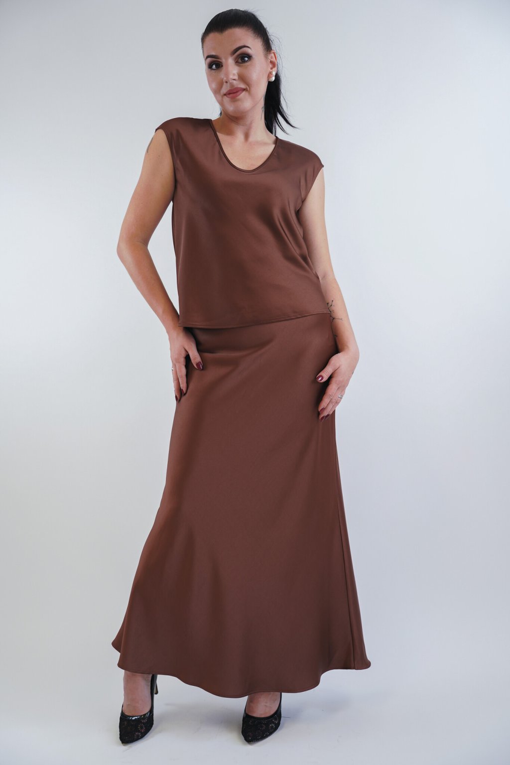 Dámská maxi sukně Imperial satén skořice