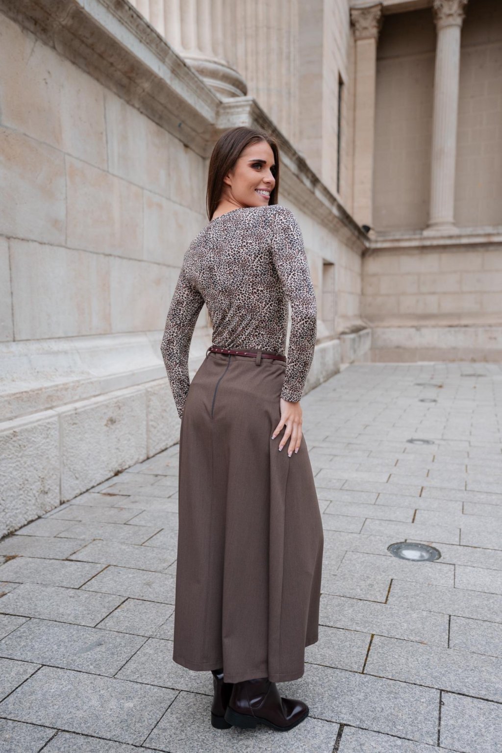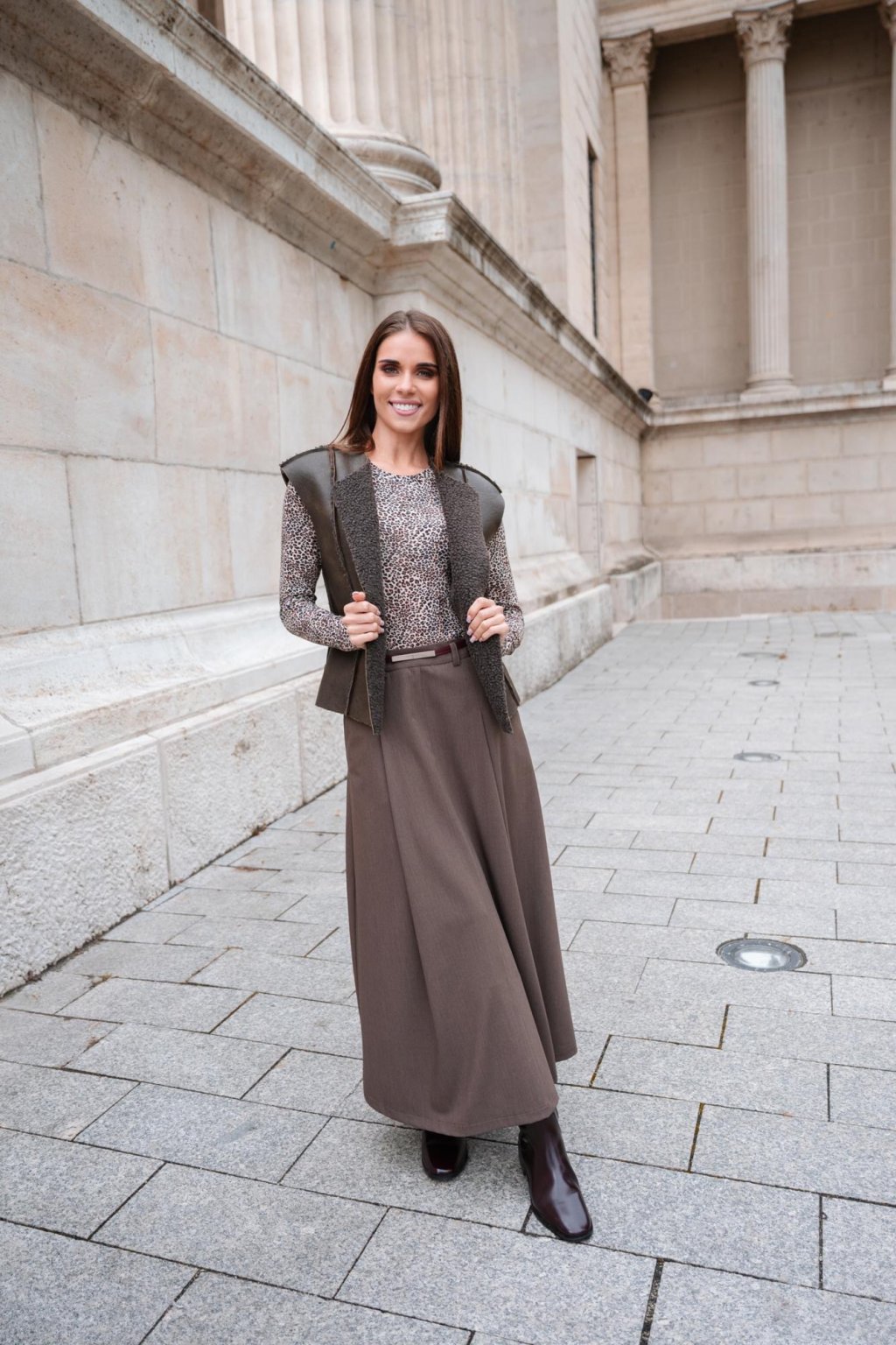 Dámská maxi sukně Magenta vyniká nadčasovou elegancí, prémiovým zpracováním a dokonale propracovaným střihem. Tento model je navržen tak, aby lichotil postavě, krásně plynul při chůzi a zároveň poskytoval maximální komfort po celý den. Luxusní materiál v kombinaci s precizním krejčovským zpracováním dělá z této maxi sukně ideální volbu pro elegantní denní outfity i formálnější příležitosti. Skvěle se kombinuje s halenkami, svetříky i vestami značky Magenta a vytváří sofistikovaný, ženský look.