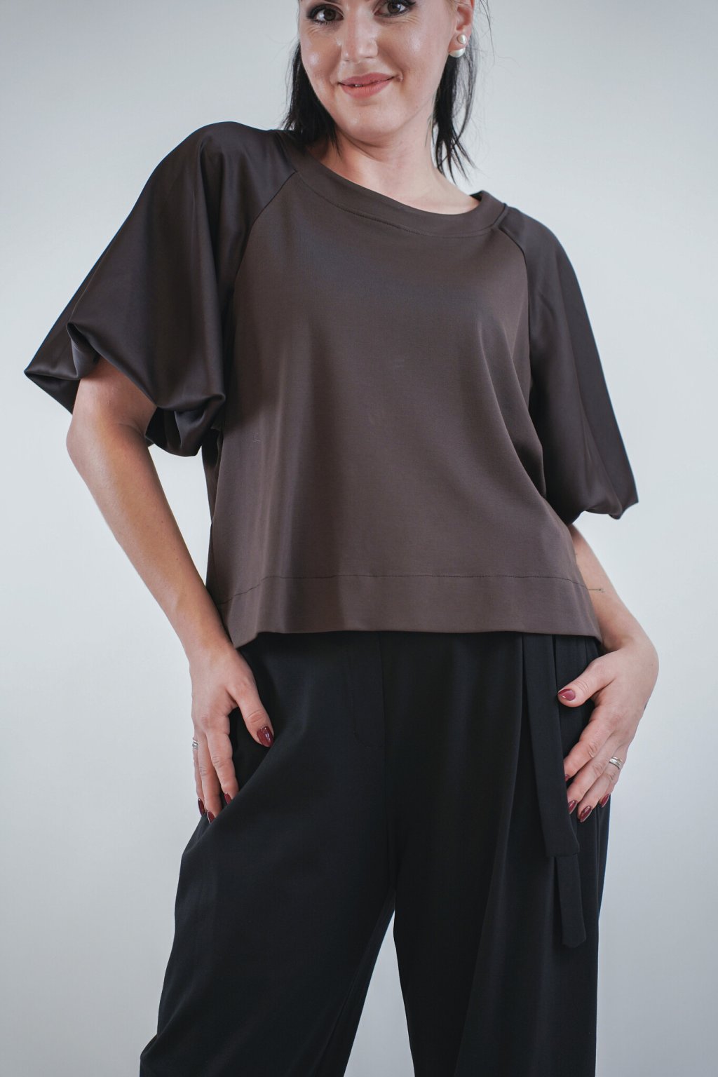 • módní balonové rukávy se splývavým efektem