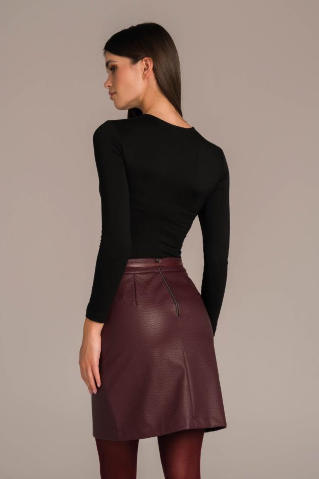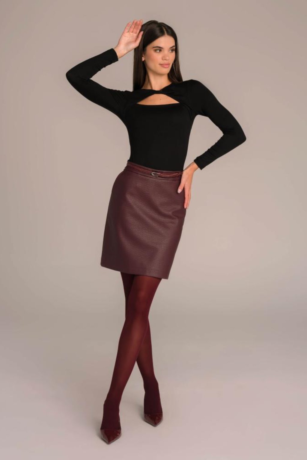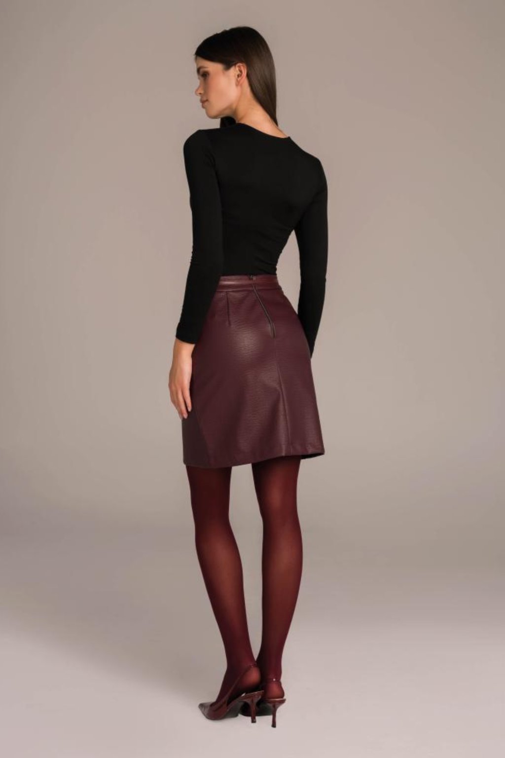 Dámská koženková sukně Magenta v elegantním odstínu vínové barvy je stylovým základem podzimního šatníku. Kratší rovný střih lichotí postavě, decentní struktura materiálu působí luxusně a zadní zapínání na zip zajišťuje perfektní padnutí. Tento nadčasový kousek snadno zkombinujete s halenkou, svetříkem nebo přiléhavým topem pro sofistikovaný look do práce i do města.