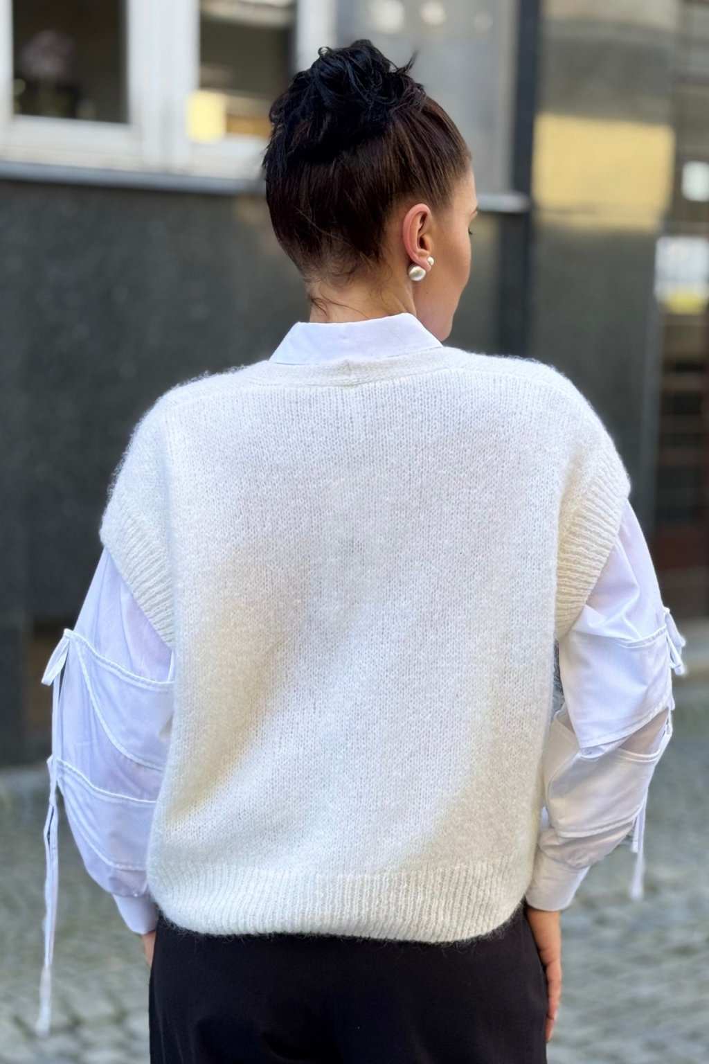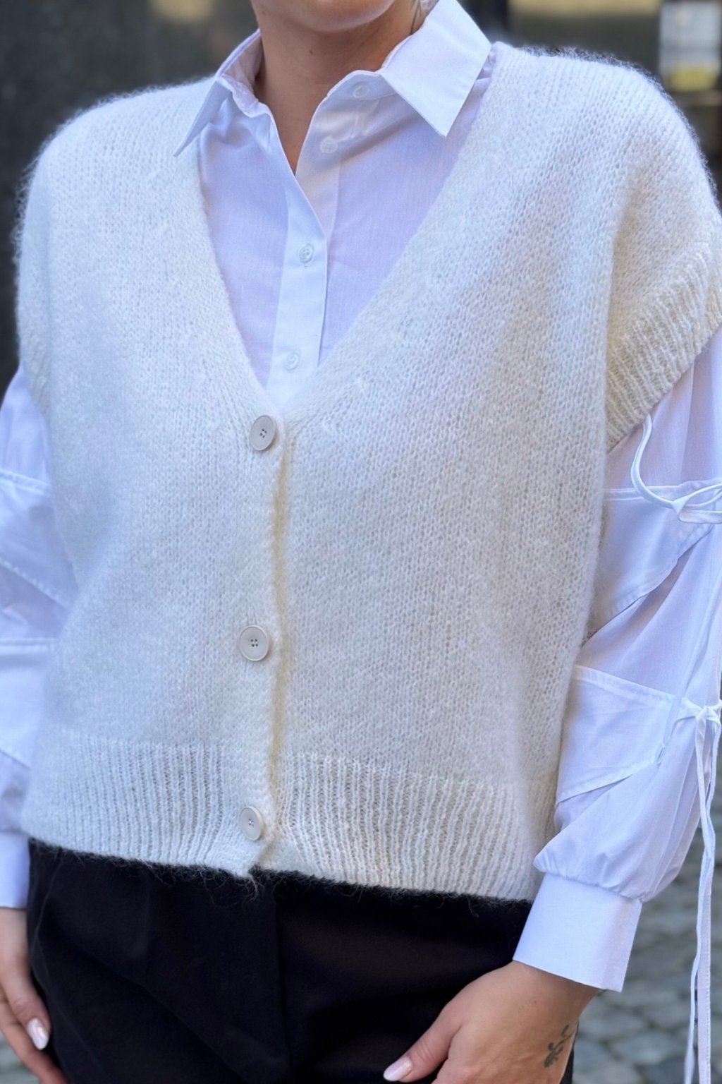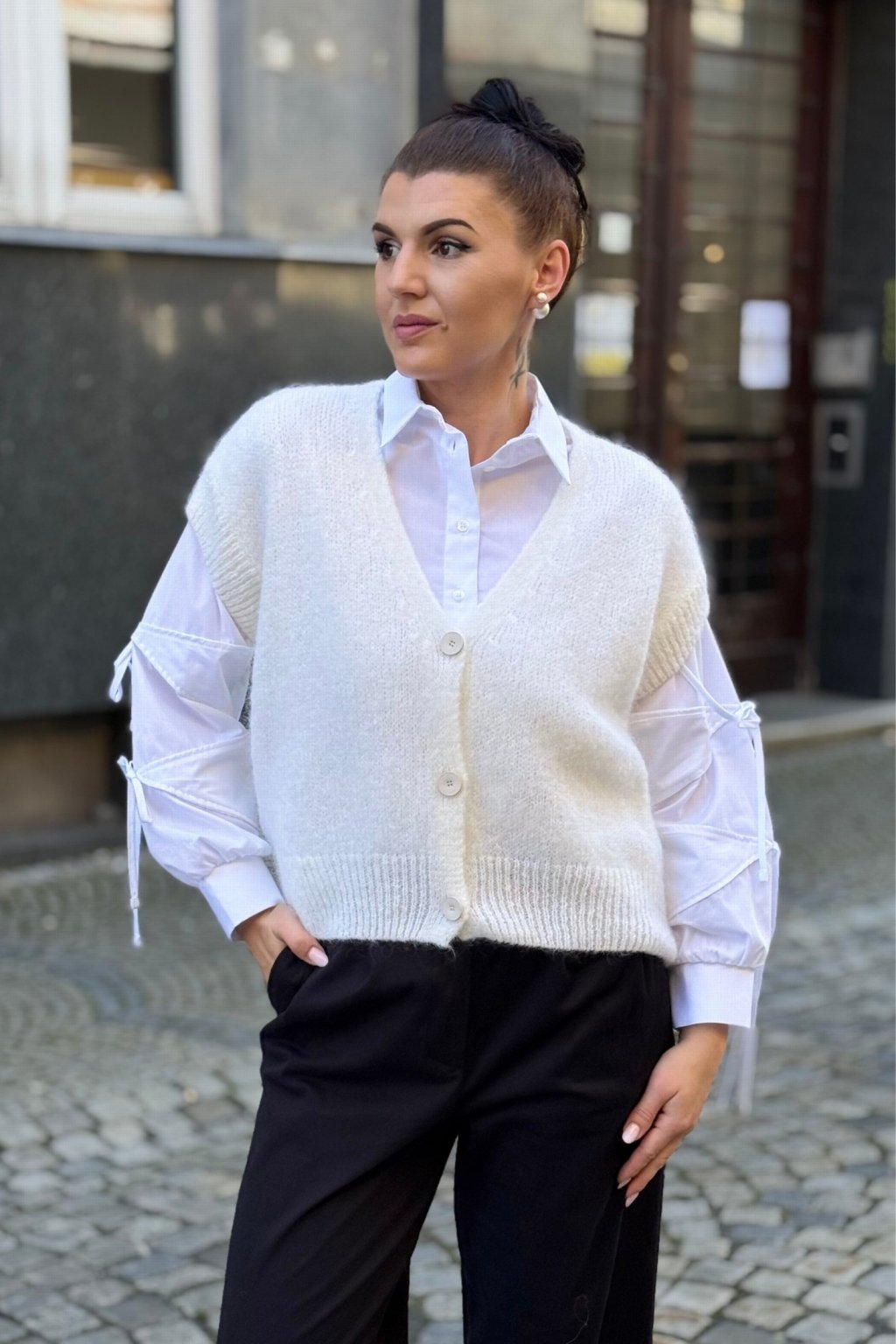 Mohérová vesta Imperial v nadčasovém smetanovém odstínu je stylový a praktický kousek, který rozzáří každý outfit. Díky složení s vysokým podílem mohéru (40 %) je vesta nejen jemně lesklá a hebká na dotek, ale také velmi hřejivá, takže se skvěle hodí i do chladnějších dnů. Nadýchaný vzhled materiálu působí luxusně a elegantně, zatímco pohodlný volnější střih umožňuje snadné vrstvení přes košile, roláky či topy. Vesta má výrazný V výstřih, zapínání na knoflíky a kvalitní zpracování značky Imperial, které z ní dělá nadčasový kousek do vašeho šatníku.