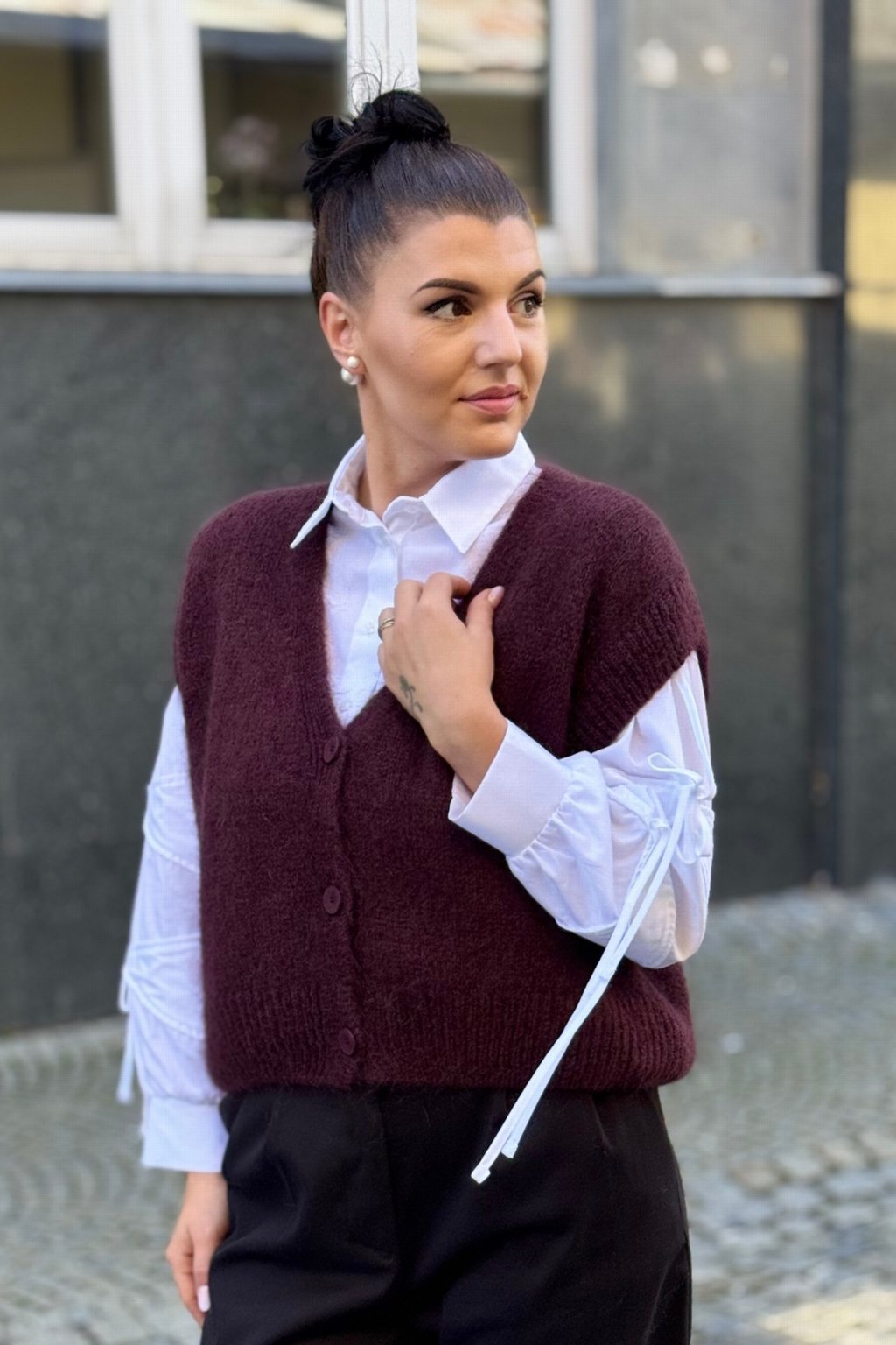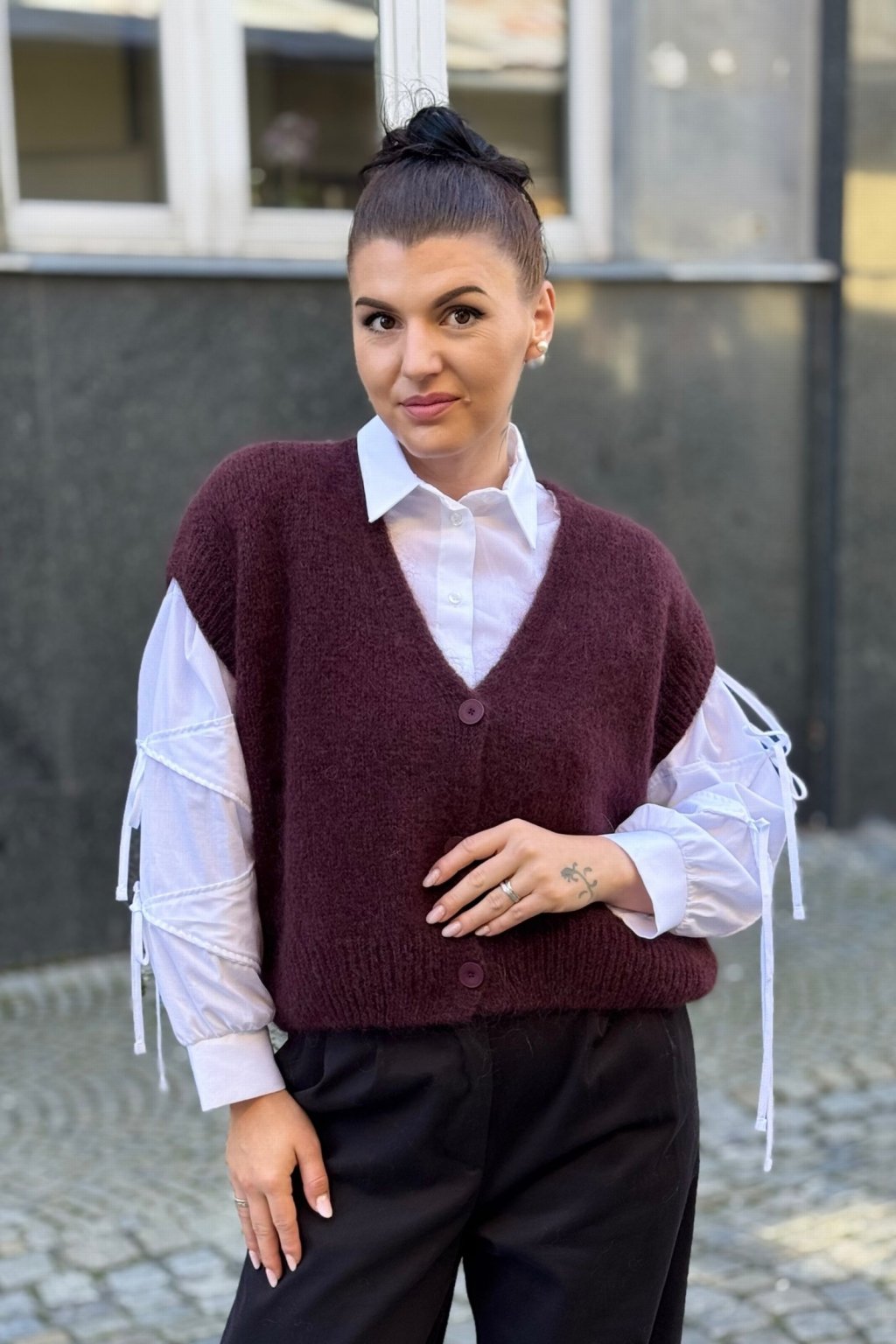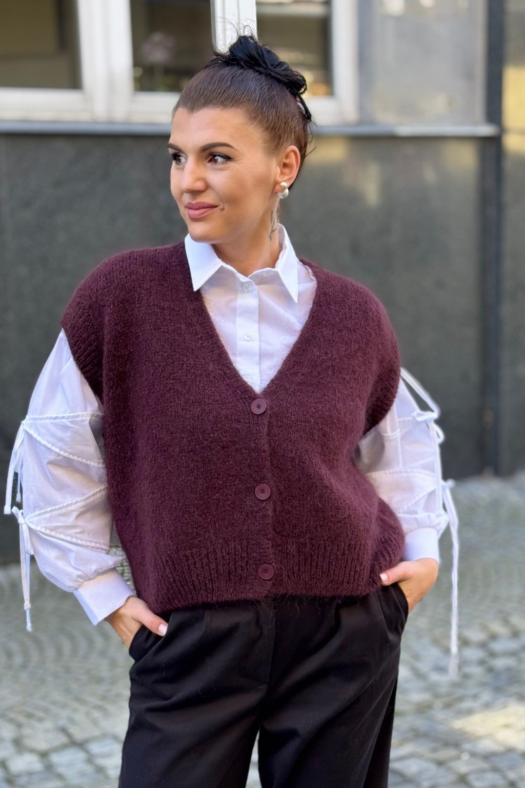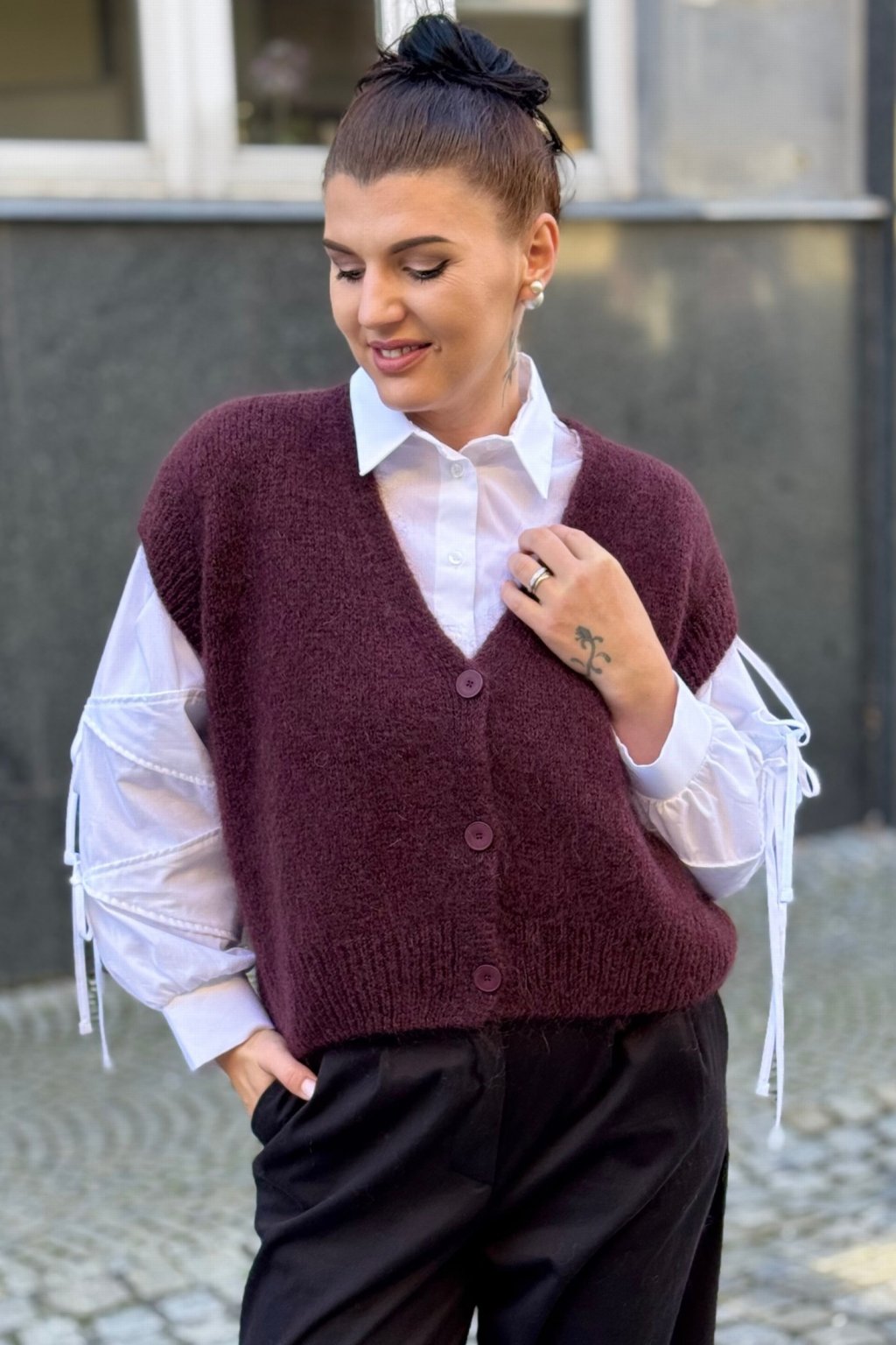 stylový V výstřih a zapínání na knoflíky
