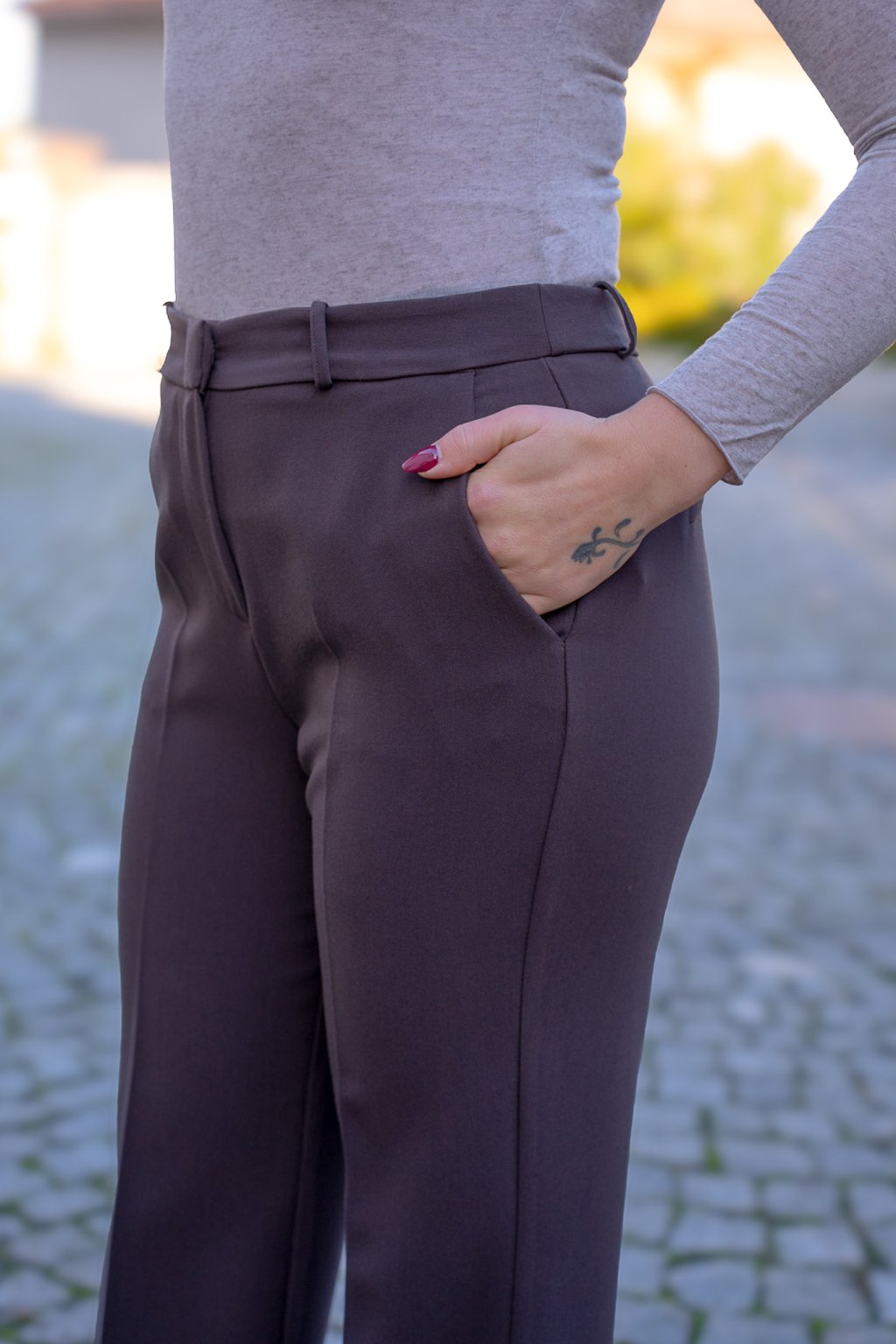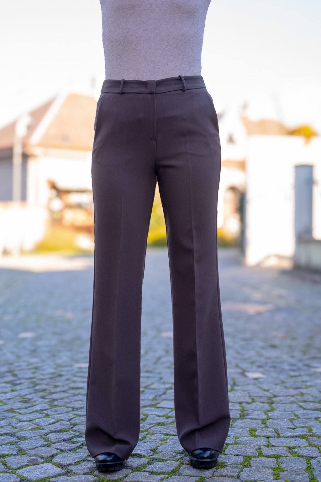 Dámské kalhoty značky Imperial Fashion představují elegantní a nadčasový kousek, který dokonale podtrhne ženskou siluetu. Prémiový materiál s jemnou texturou zaručuje vysoký komfort, perfektní padnutí a hladký vzhled po celý den. Kalhoty mají rovný, lehce rozšířený střih, který opticky prodlužuje nohy a působí velmi sofistikovaně. Vysoký pas s poutky na pásek doplňují boční kapsy a dekorativní paspulové kapsy vzadu, které dotvářejí elegantní detail.