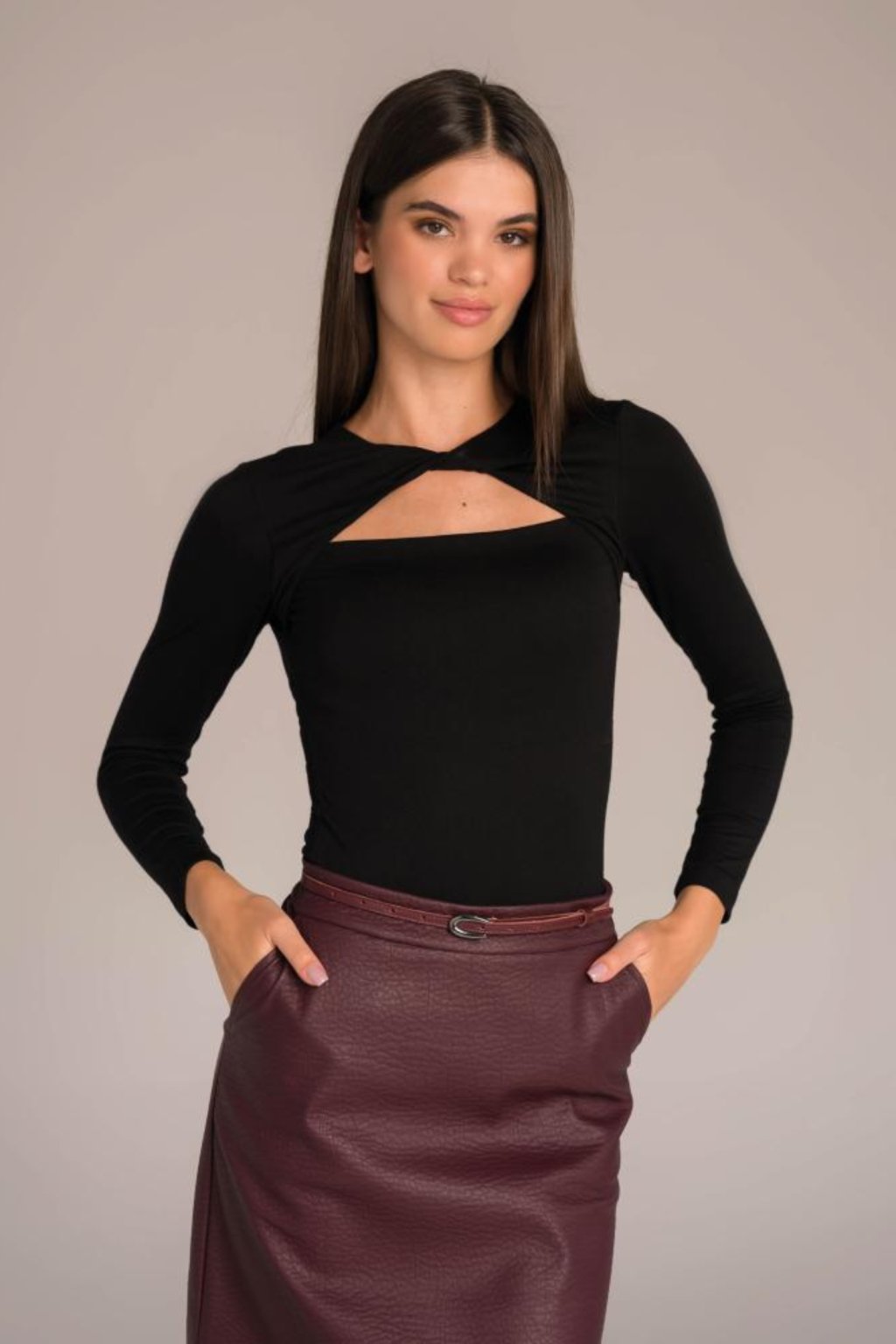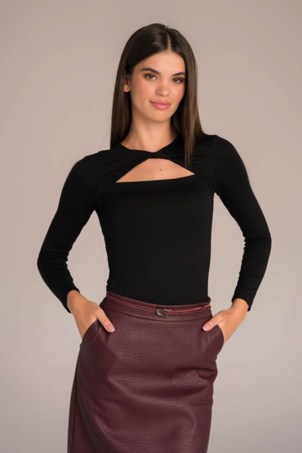 Tento elegantní dámský top Magenta zaujme svým originálním střihem s výstřihem do tvaru slzy a překřížením u krku. Díky pružnému materiálu krásně sedí na postavě a zvýrazní ženské křivky. Černá barva dodává nadčasovost a snadno se kombinuje jak s elegantní sukní, tak s kalhotami. Ideální volba pro společenské i pracovní příležitosti, kdy chcete působit sebevědomě a stylově.