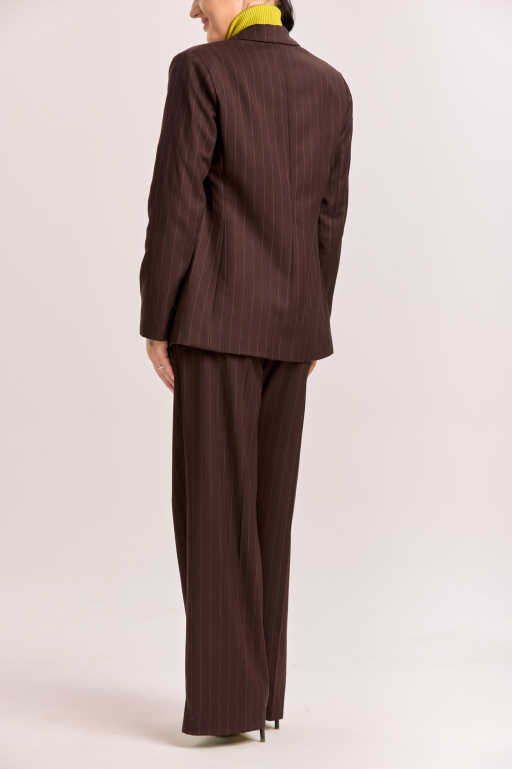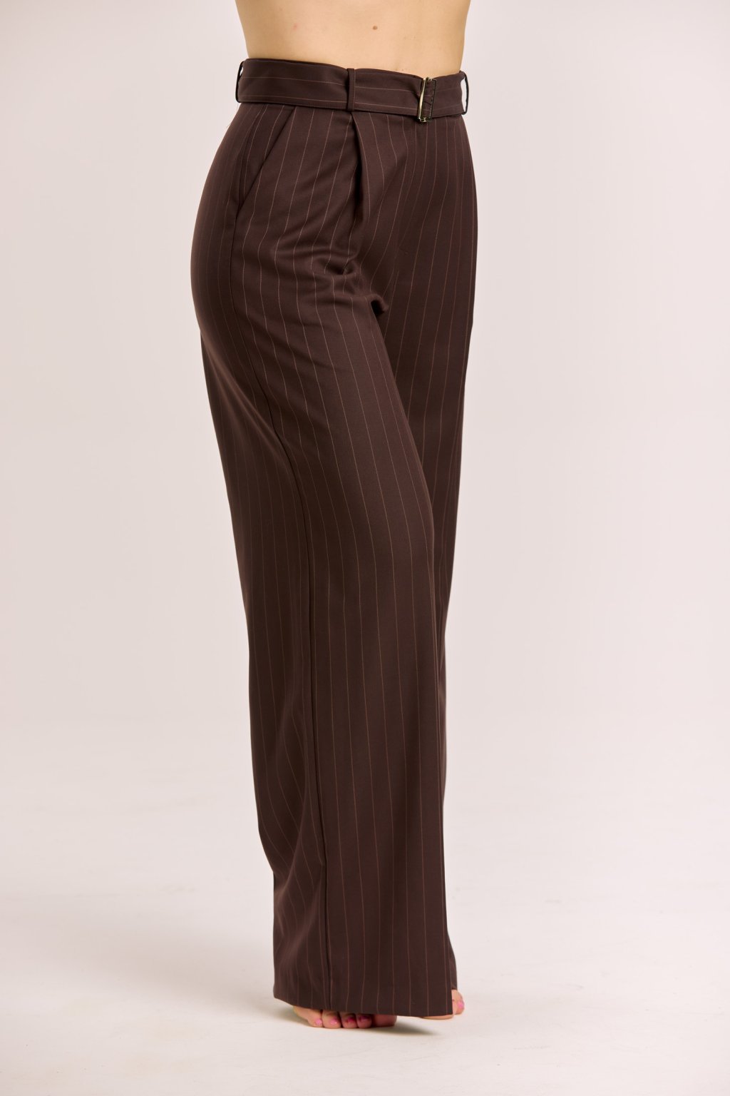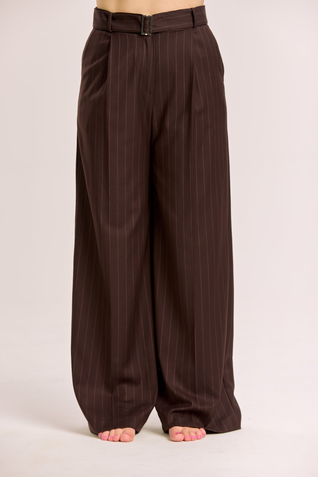 Dámské kalhoty značky Imperial v nadčasovém proužkovém designu jsou ideální volbou pro ženy, které hledají eleganci a pohodlí v jednom. Volnější široký střih s vysokým pasem působí velmi žensky a zároveň opticky prodlužuje postavu. Kalhoty jsou doplněny páskem s kovovou sponou, který podtrhne siluetu a dodá outfitu upravený vzhled. Jemný proužek dodává celku moderní a profesionální charakter, díky čemuž jsou tyto kalhoty perfektní volbou jak do kanceláře, tak pro stylové volnočasové nošení. Skvěle se kombinují se sakem ve stejném vzoru do kompletu, ale také s jednoduchým topem či košilí.