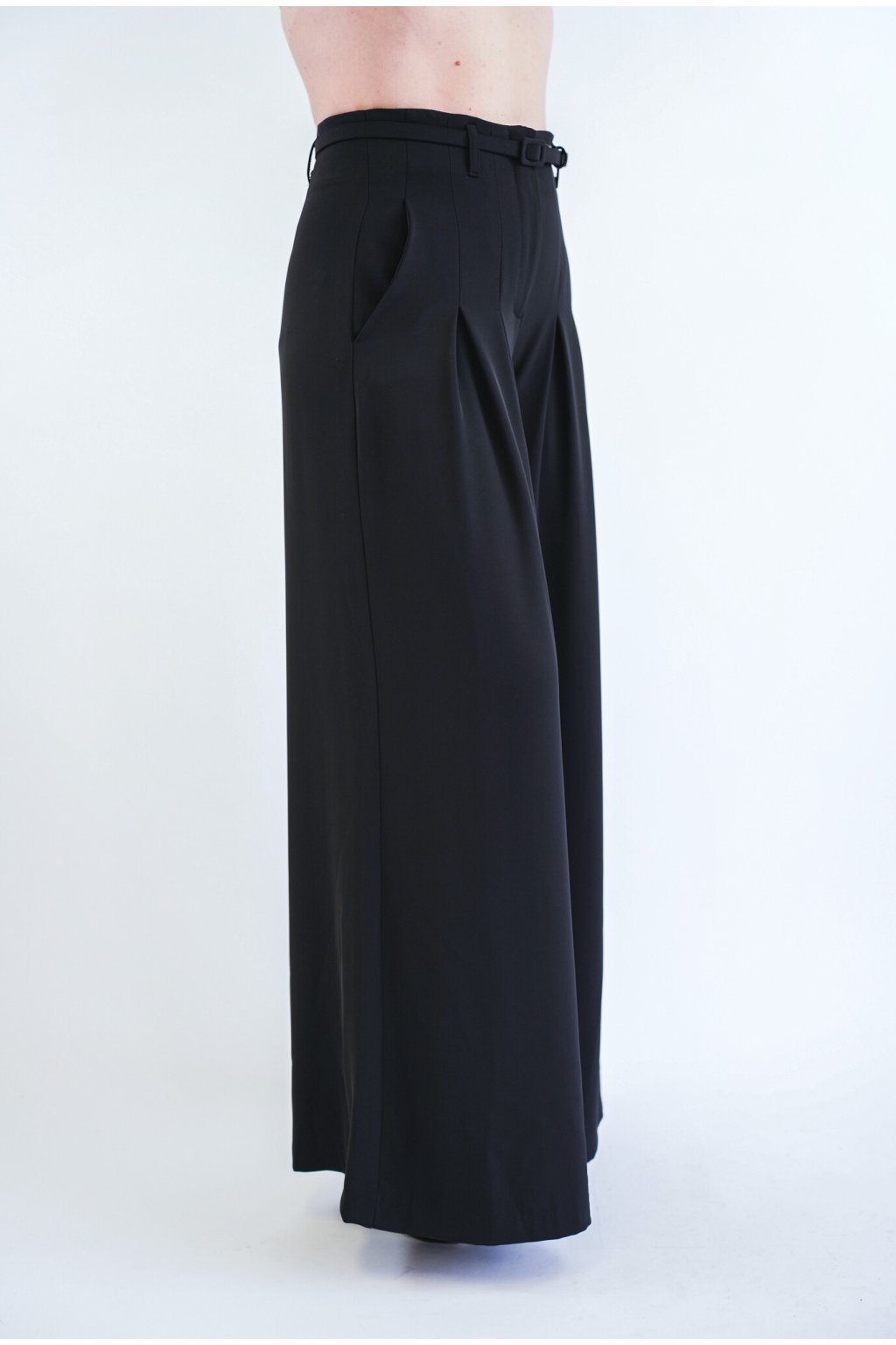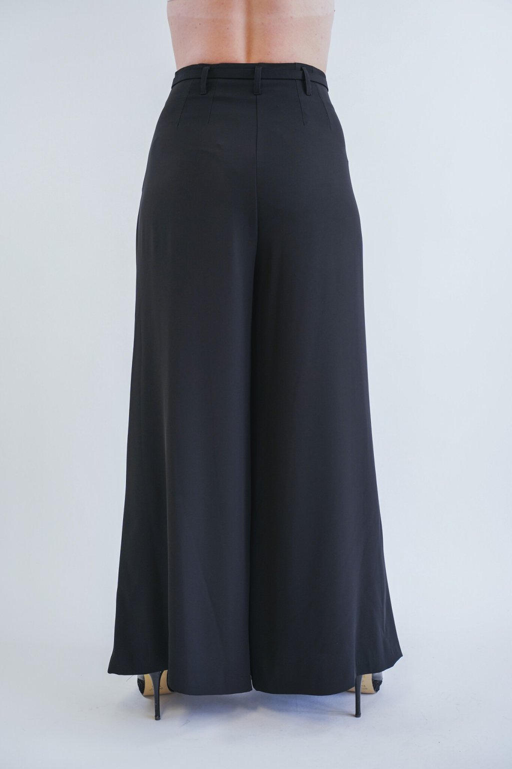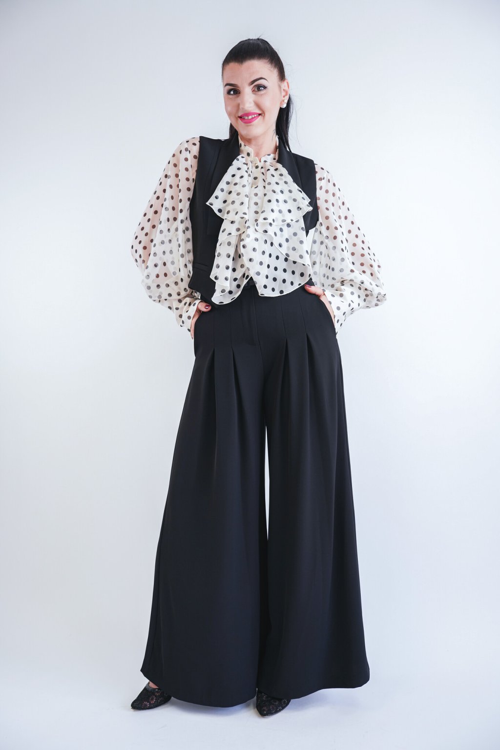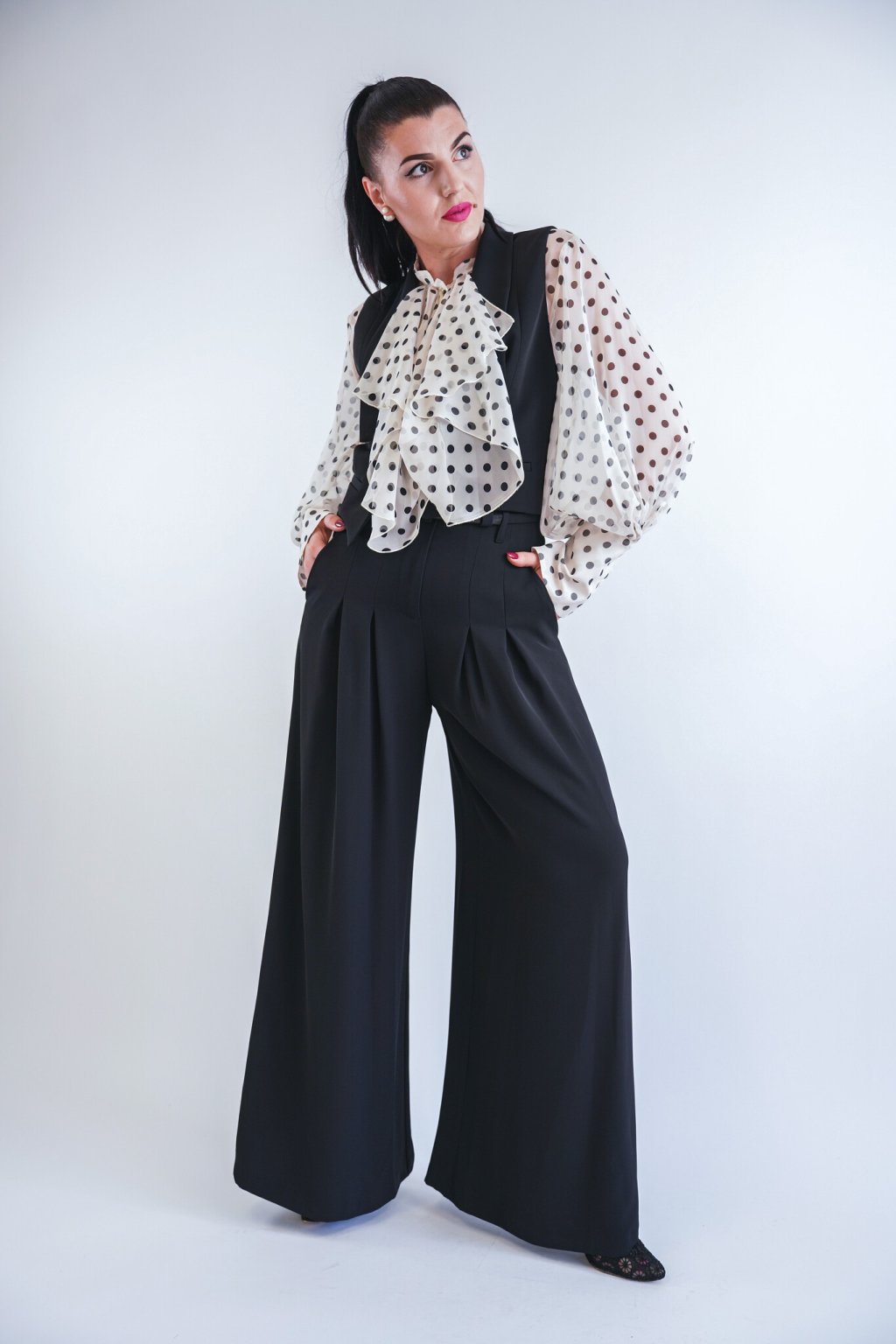 Dámské kalhoty značky Imperial zaujmou svým elegantním a nadčasovým střihem. Mají vysoký pas, výrazné sklady a extra široké nohavice, které působí velmi stylově a opticky prodlužují postavu. Velikou předností tohoto střihu je fakt, že jsou sklady v pase prošité a kalhoty se rozšiřují až v oblasti stehen. Kalhoty vám v oblasti bříška tedy nepřidají ani cm. Zapínání je doplněno o pásek ve stejné barvě, který podtrhuje ženskou siluetu. Tento model se skvěle kombinuje se sakem, halenkou i elegantním topem, a hodí se tak do práce, na schůzky i společenské příležitosti.