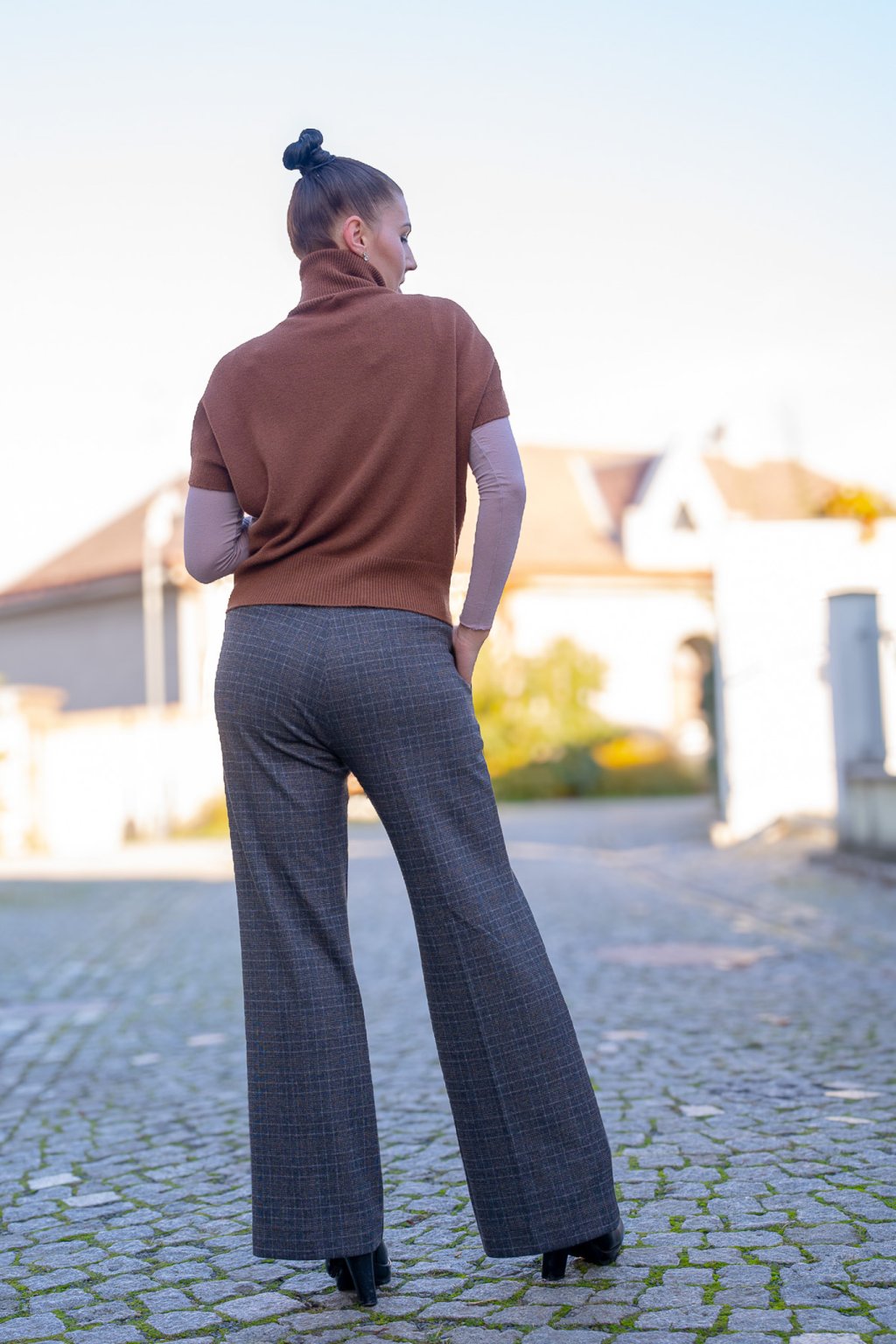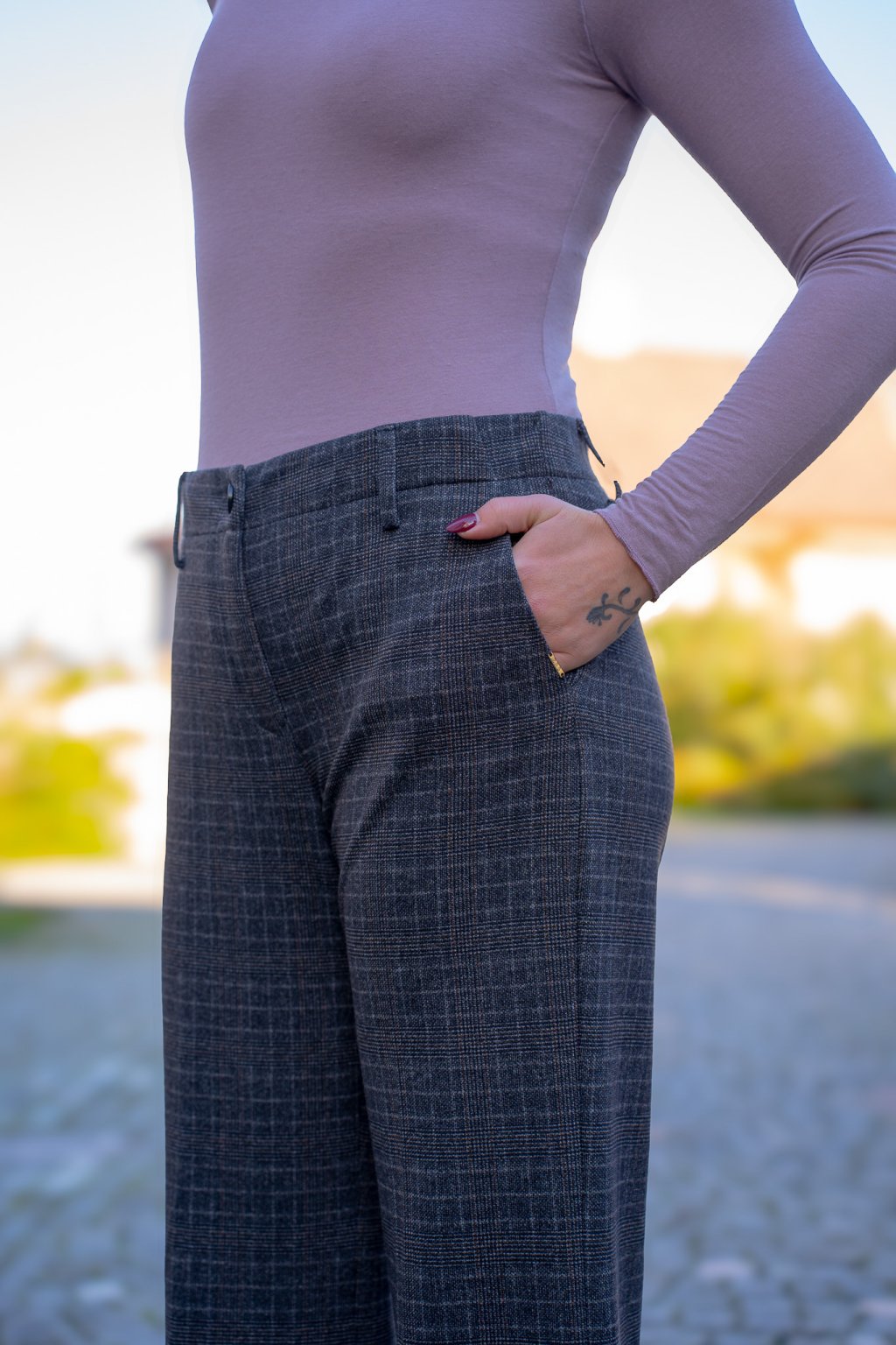 Dámské kalhoty značky ZRS v sobě spojují eleganci, pohodlí a kvalitu zpracování. Prémiová látka s decentním kostkovaným vzorem působí nadčasově a zároveň dodává outfitu profesionální šmrnc. Střih s rovnými nohavicemi opticky prodlužuje nohy, zatímco klasický pas s poutky umožňuje doplnění oblíbeným páskem. Praktické boční kapsy doplňuje zapínání na zip a knoflík pro maximální komfort. Ideální volba do práce, města i na volný čas – univerzální základ šatníku, který nikdy nezklame.