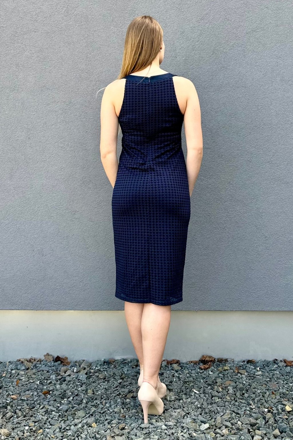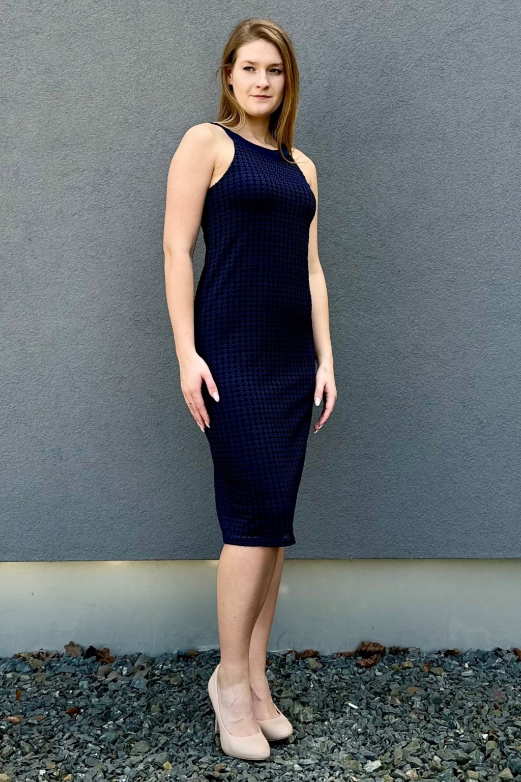 Dámské krajkové šaty na ramínka, na zádech je všitý skrytý zip. Vyrobeno z elastické krajky, podšité viskózovým úpletem. Modelka měří 164 cm a má velikost 36.