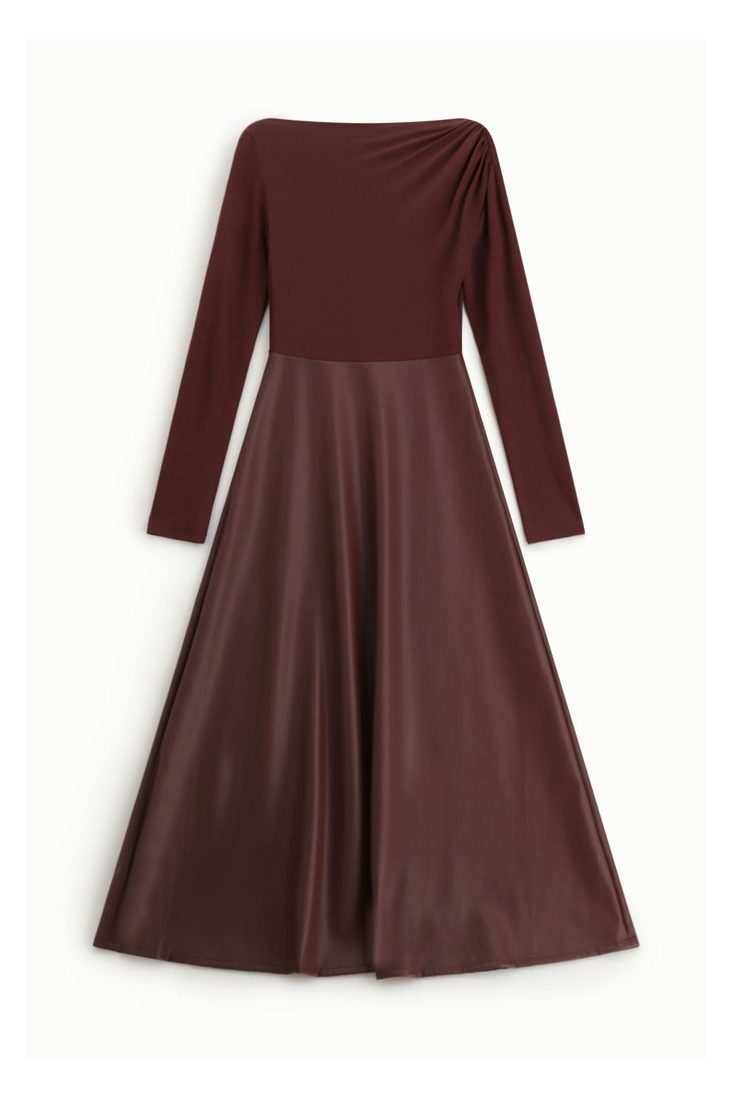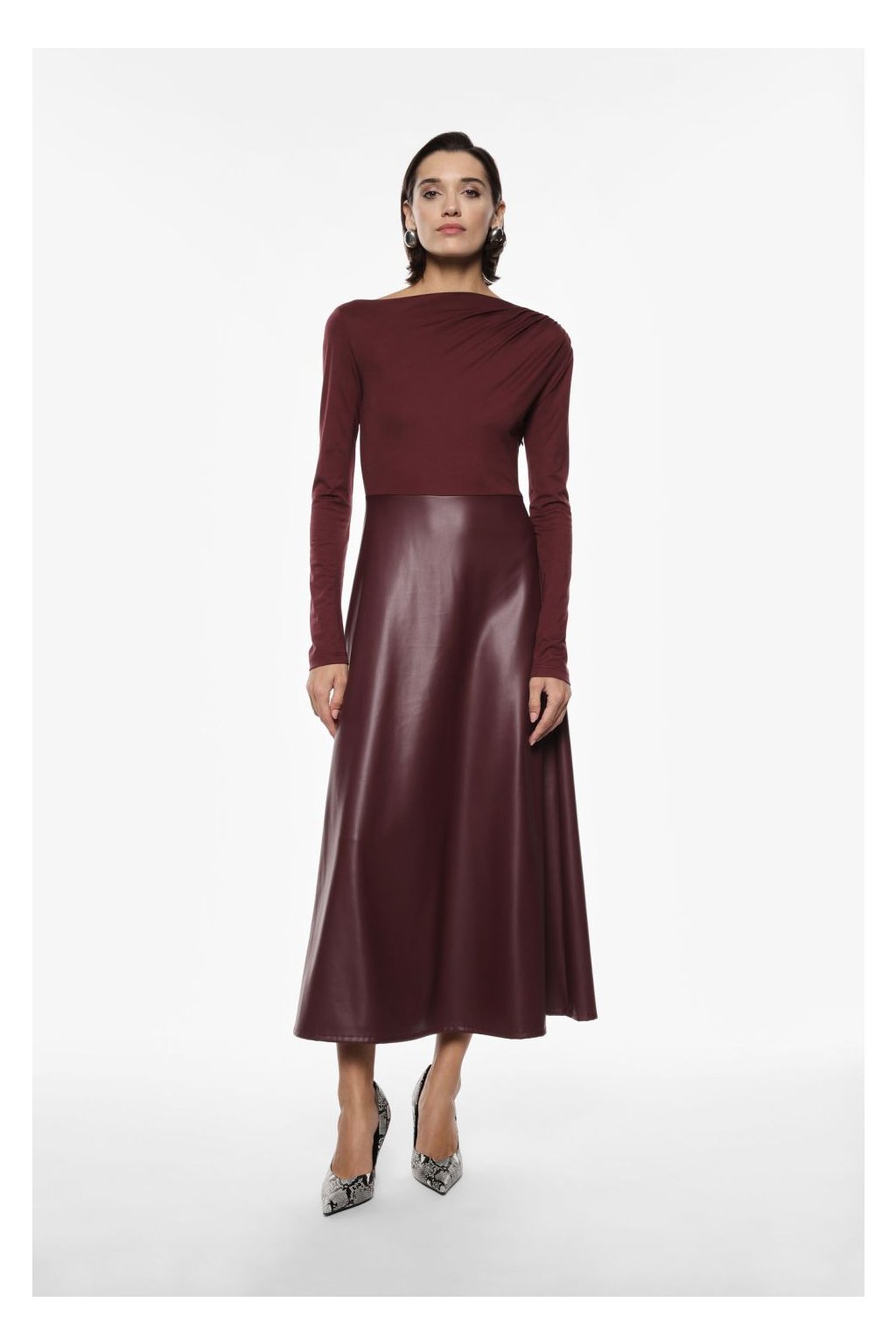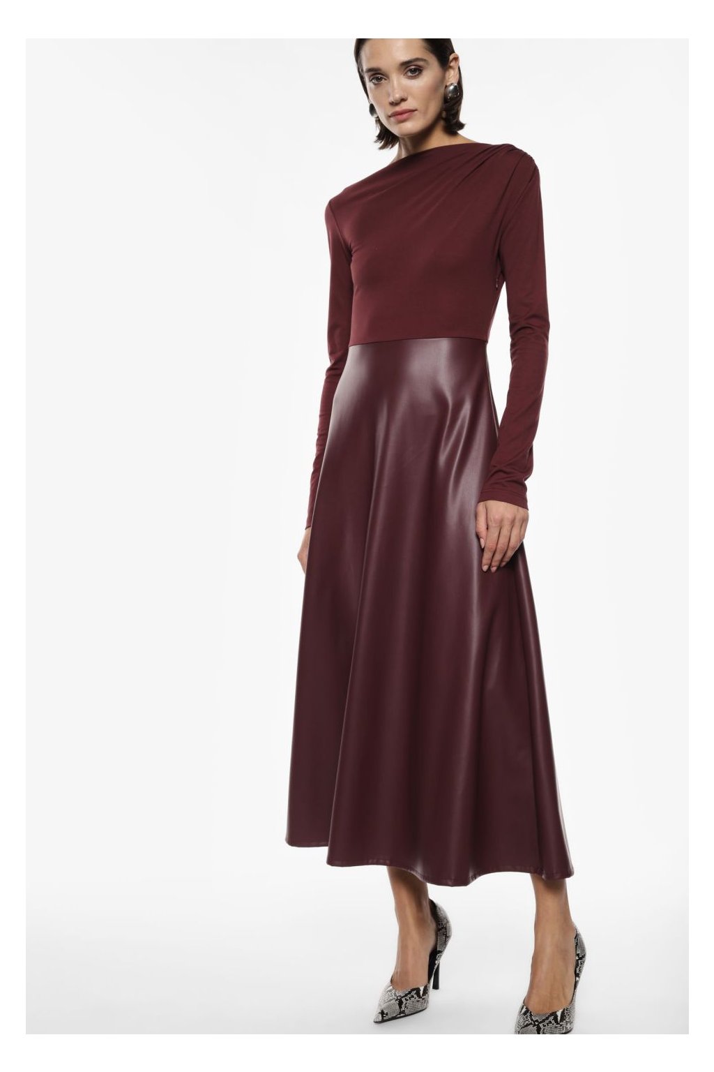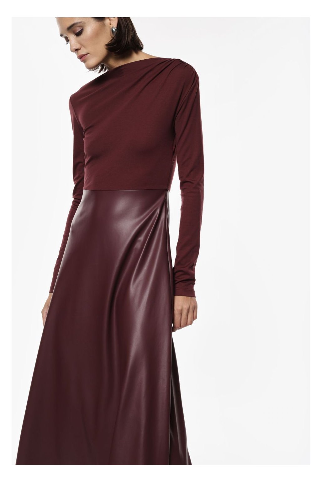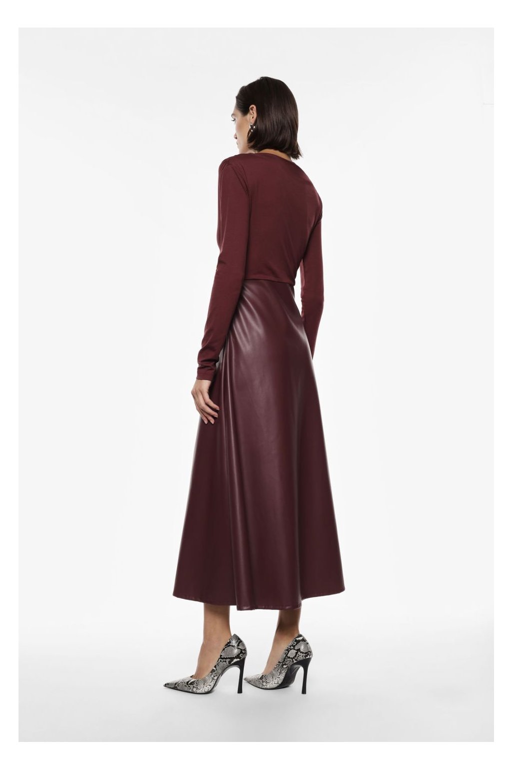 kombinace úpletu a koženkové sukně pro moderní kontrast