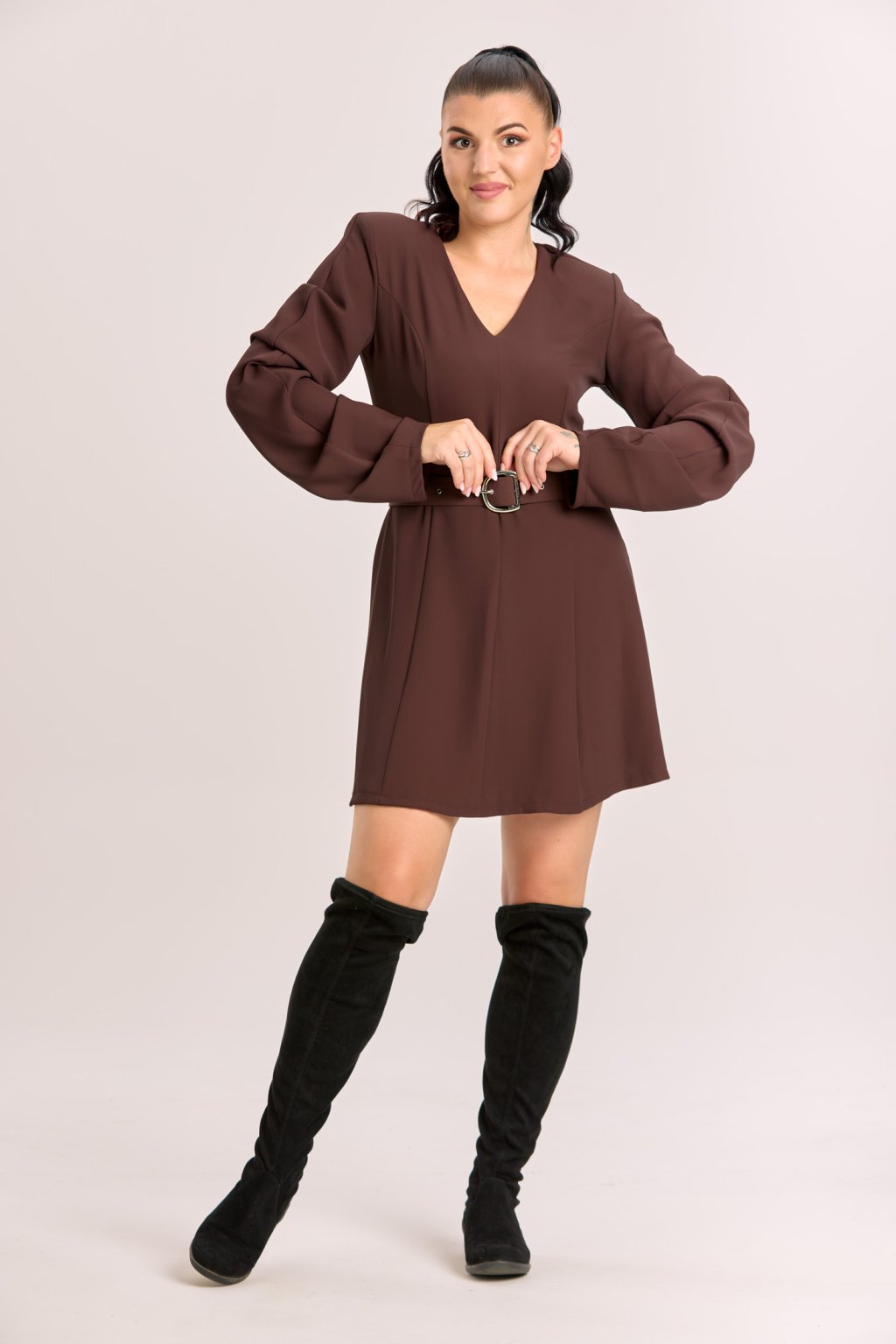 elegantní mini šaty v hnědé barvě