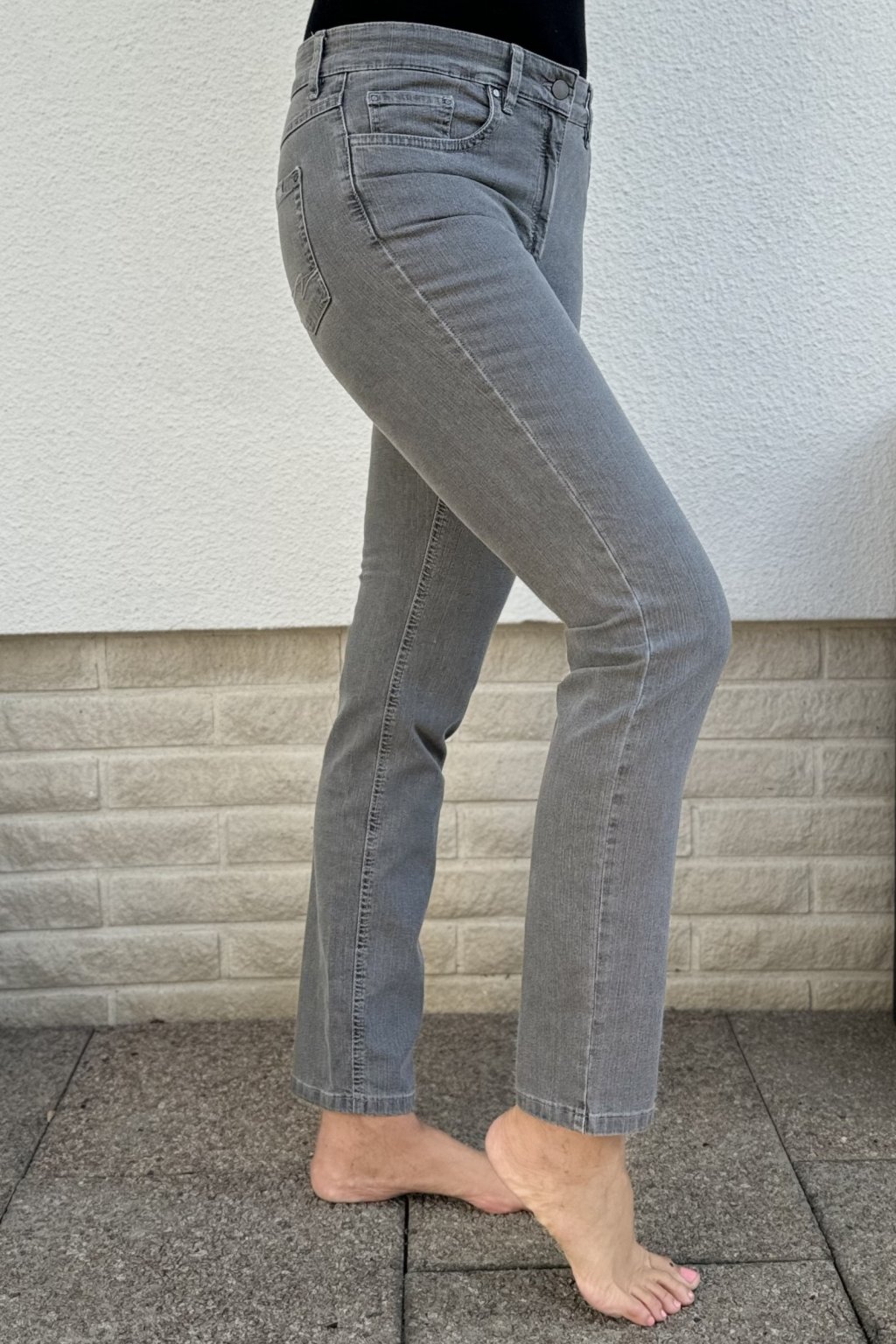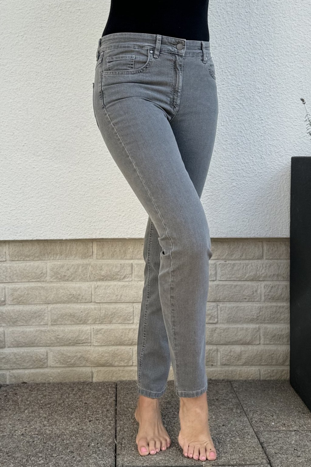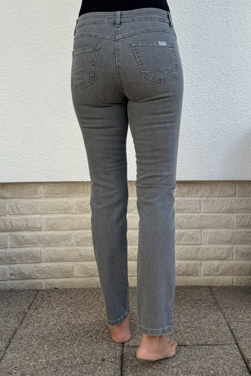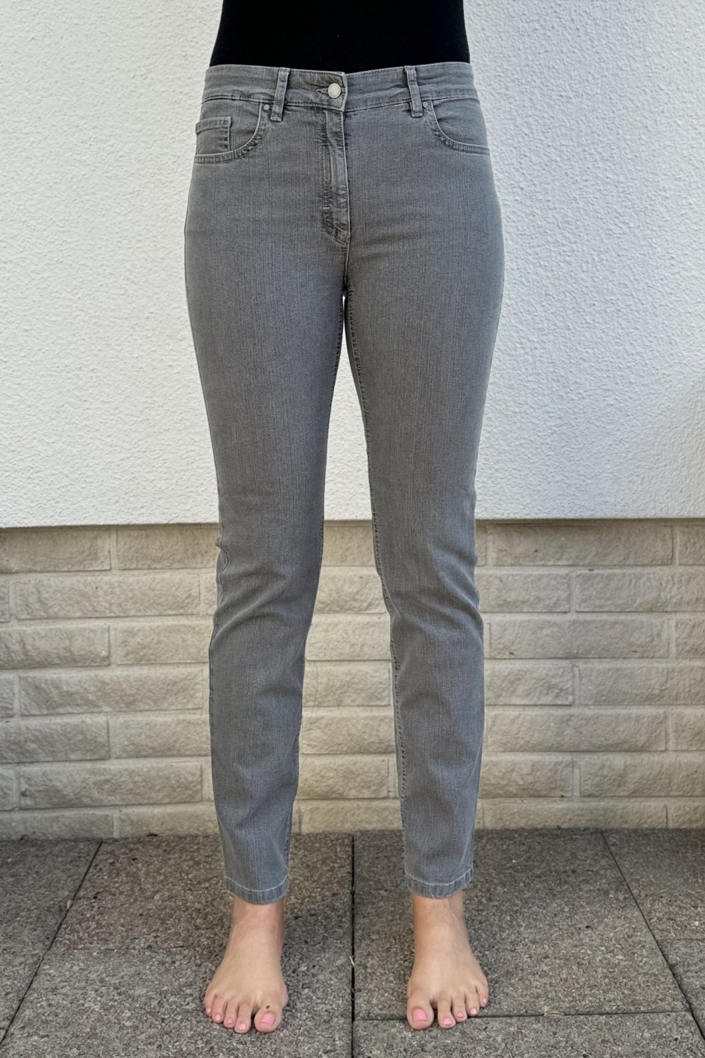 Dámské rifle německé zn. Zerres ve střihu Cora, které jsou vhodné pro ženy s typem postavy "jablko". Tedy pro ty, které mají větší bříško, ale úzké boky, zadeček a stehna. Dámské kalhoty mají dlouhé nohavice, které mají úzký střih. Tyto dámské rifle Zerres Cora mají zadní kapsy zdobené vyšíváním a drobnými bílými kamínky. Tyto dámské rifle jsou vyrobeny ze směsové elastické rifloviny. Jsou extrémně elastické, takže doporučujeme objednávat rifle vždy o jednu velikost menší, než jste běžně zvyklá.