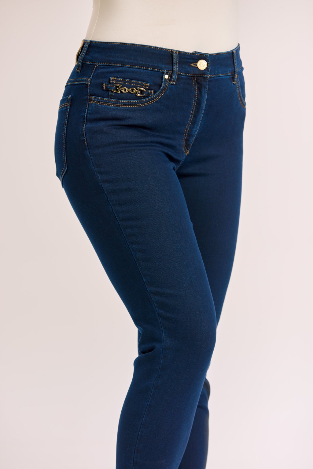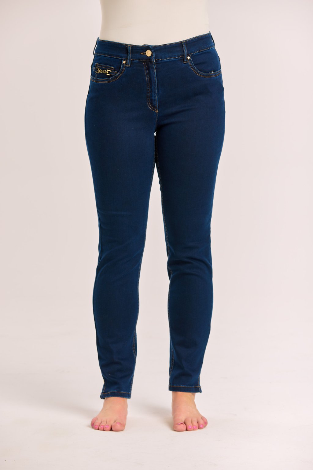 Rifle německé značky ZRS, model Sarah, jsou elegantní a zároveň velmi pohodlné džíny, které padnou zejména ženám s postavou typu hruška. Rovný střih krásně vyrovnává proporce, lichotí bokům a opticky prodlužuje nohy. Směs bavlny, polyesteru, modalu a elastanu zajišťuje příjemný pocit na těle, pružnost a perfektní tvarovou stálost i po celodenním nošení. Rifle Sarah zaujmou také precizně zpracovanými detaily – ozdobné prošívání, kovová aplikace na kapse, drobné kovové nýty a rozparky na spodním okraji nohavic jim dodávají elegantní šmrnc.