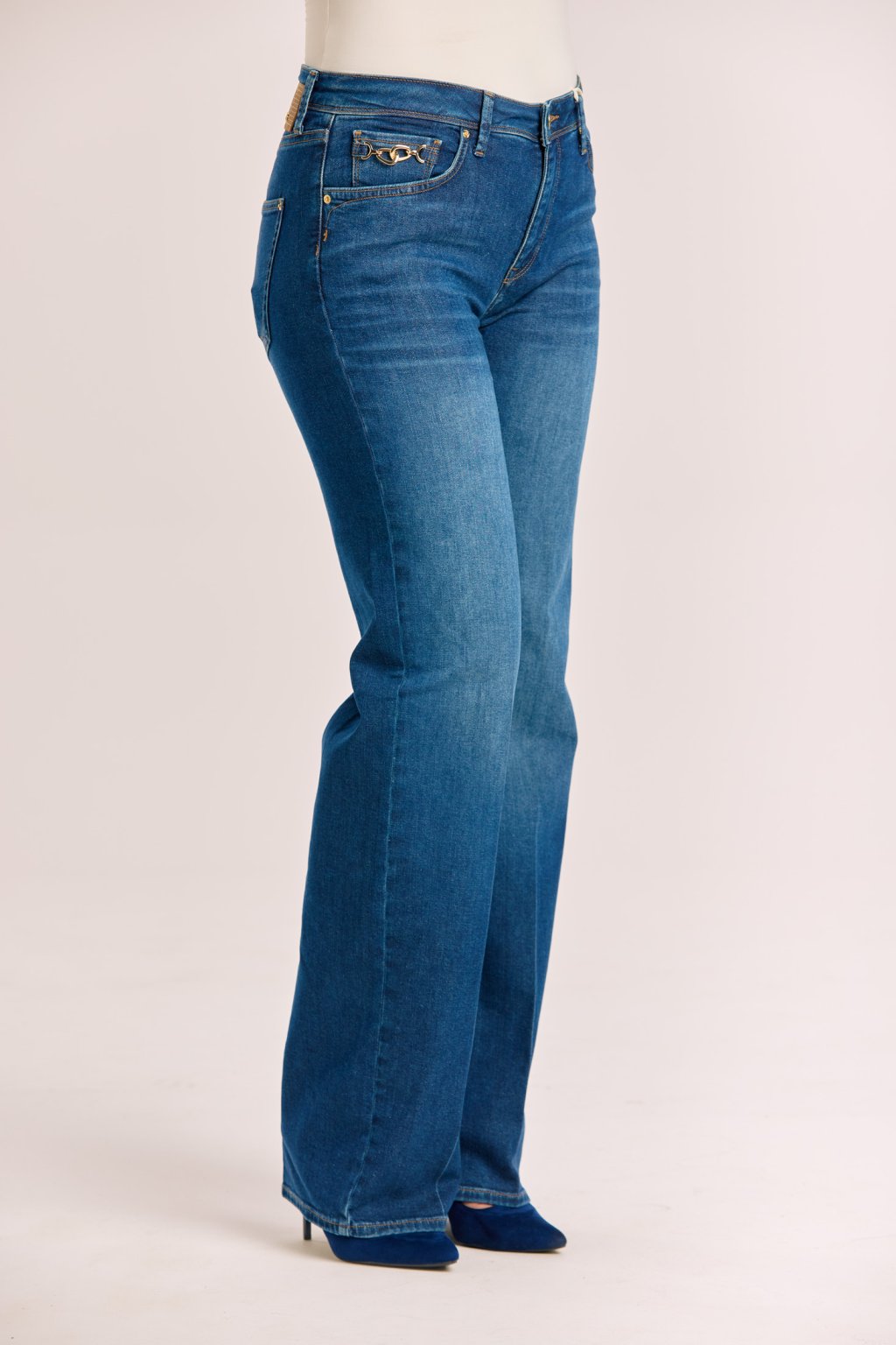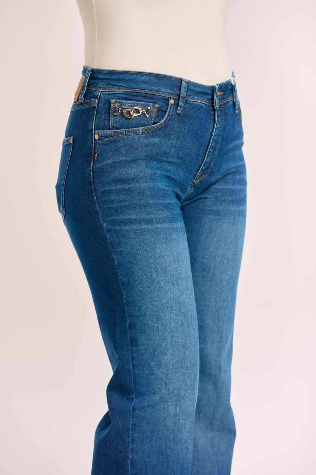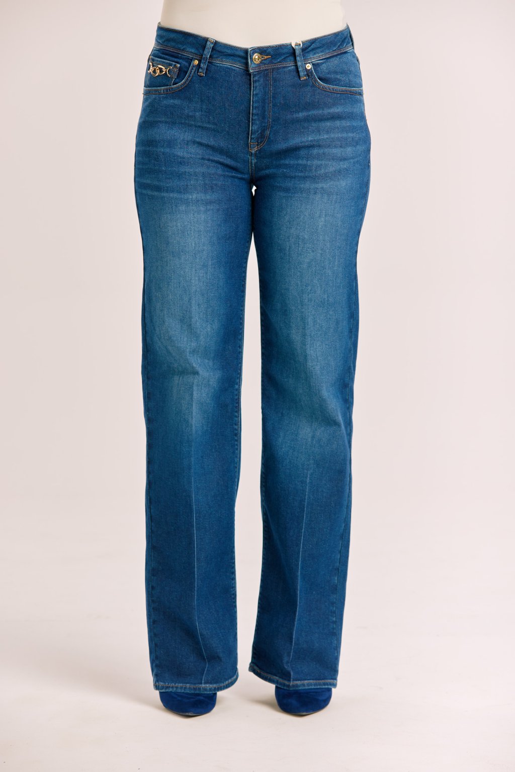 Rifle zdobí decentní detaily – kontrastní prošívání, klasické kapsy a výrazný prvek v podobě kovové ozdoby u kapsy, který dodává modelu šmrnc. Vypraná džínovina působí svěže a snadno se kombinuje jak s elegantní halenkou, tak s ležérním tričkem. Ideální volba pro ženy, které chtějí spojit styl a pohodlí v jednom.