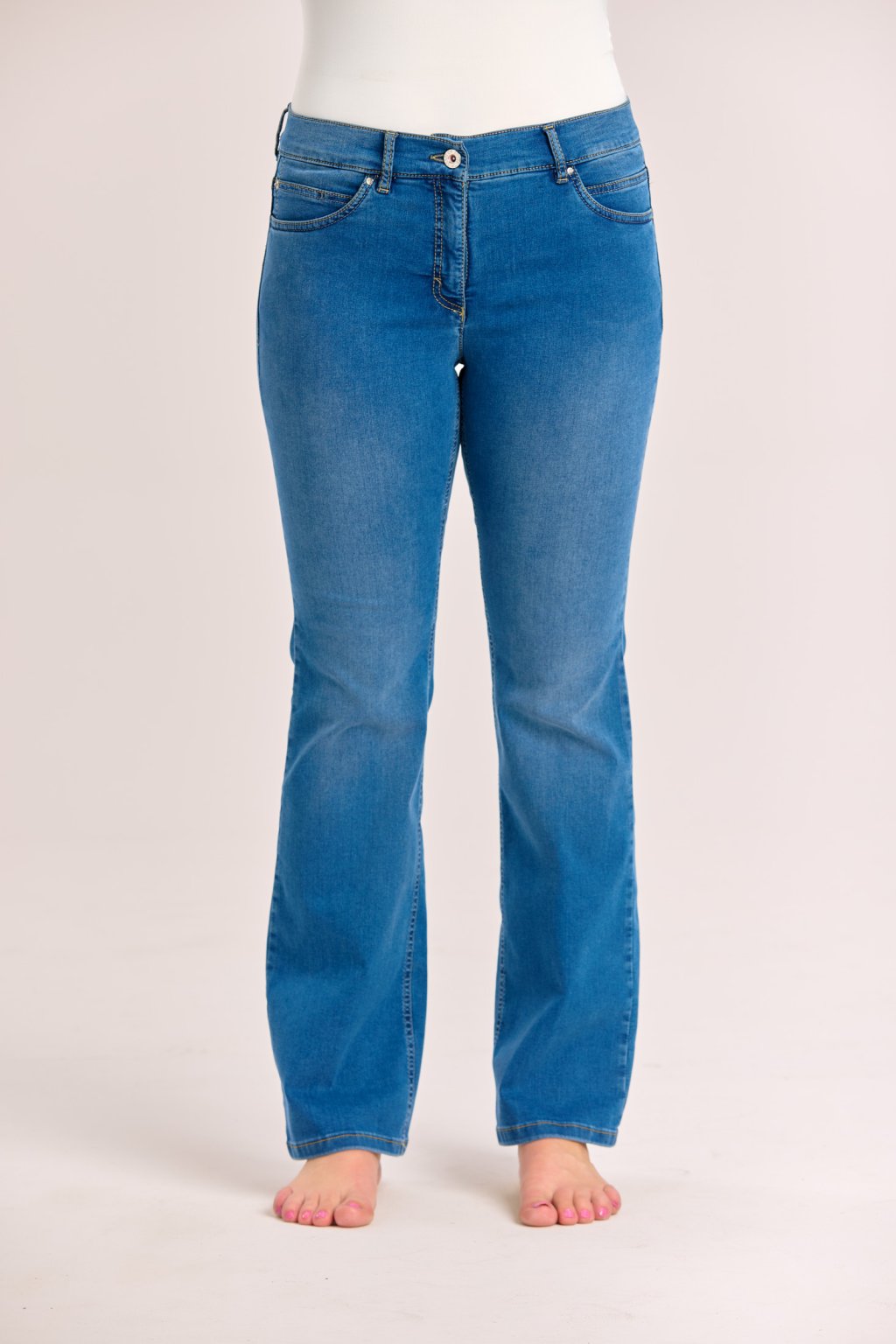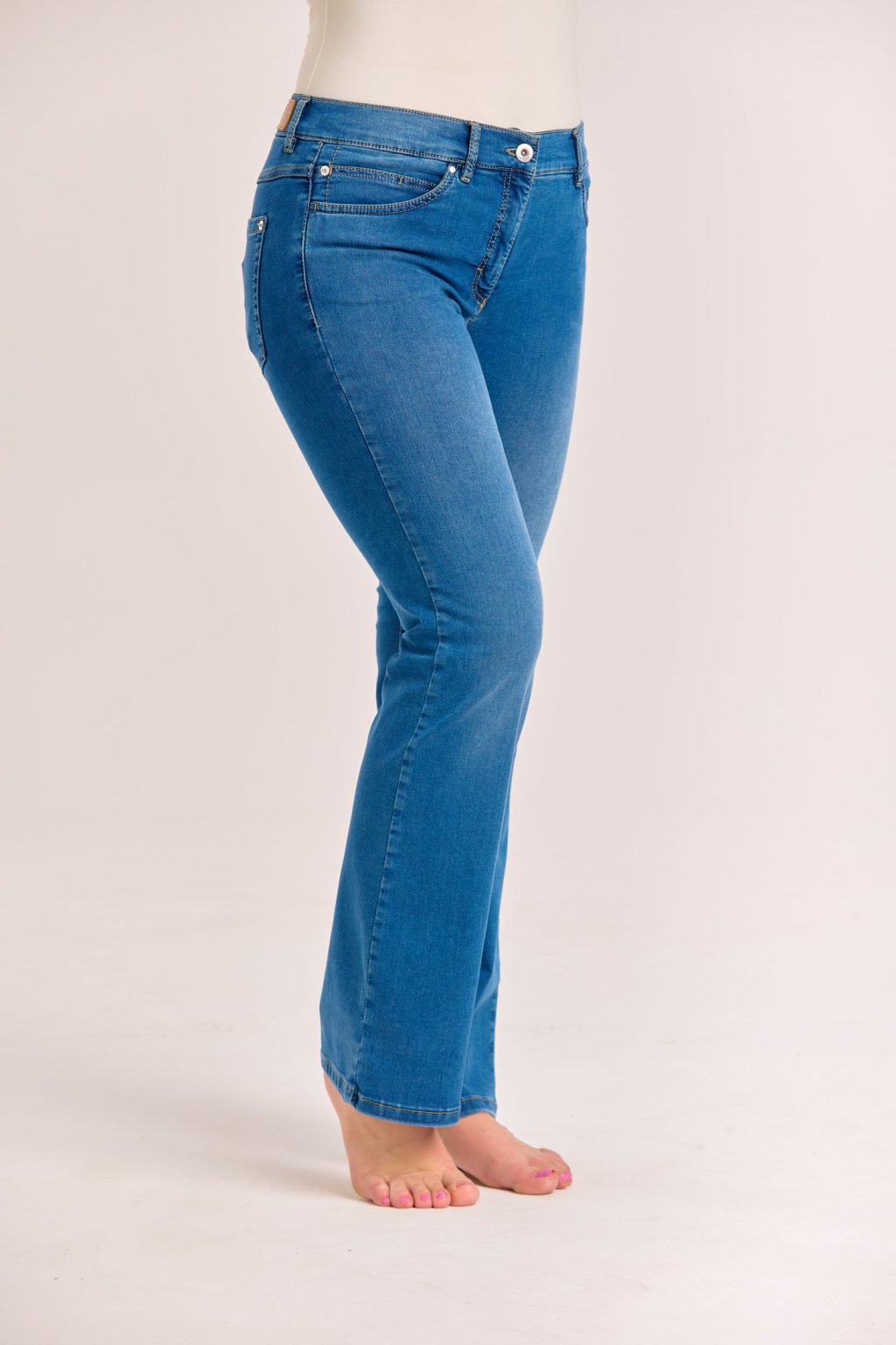 Rifle německé značky ZRS, model Twigie, přináší kombinaci pohodlí a stylu pro každodenní nošení. Extra pružný denim s podílem bavlny, polyesteru a elastanu se dokonale přizpůsobí postavě, drží tvar a zároveň je příjemný na dotek. Rozšířený střih od kolen dolů lichotí zejména postavám typu hruška a ženám se širšími lýtky, protože opticky vyrovnává siluetu a opticky prodlužuje siluetu. Decentní prošití, klasický pětikapsový design a jemné stínování na stehnech dodávají riflím moderní vzhled, který se snadno kombinuje jak s elegantními, tak i ležérními kousky.