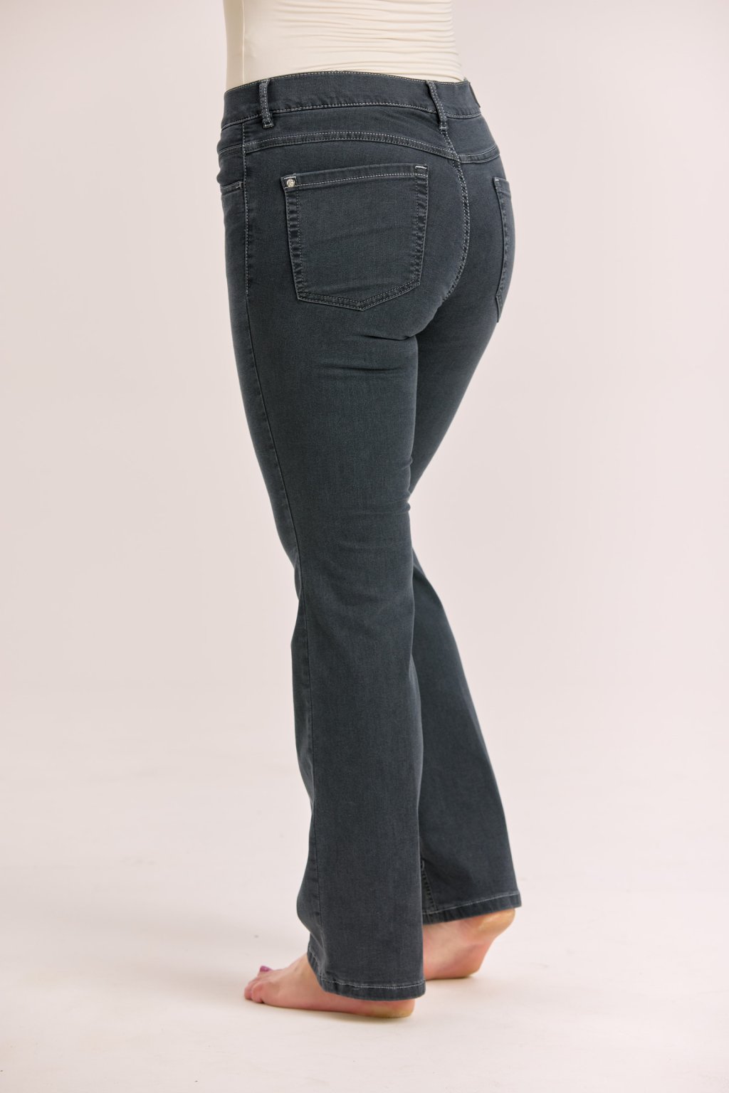 Rifle německé značky ZRS, model Twigie, přináší kombinaci pohodlí a stylu pro každodenní nošení. Extra pružný denim s podílem bavlny, polyesteru a elastanu se dokonale přizpůsobí postavě, drží tvar a zároveň je příjemný na dotek. Rozšířený střih od kolen dolů lichotí zejména postavám typu hruška a ženám se širšími lýtky, protože opticky vyrovnává siluetu a opticky prodlužuje siluetu. Decentní prošití, klasický pětikapsový design a jemné stínování na stehnech dodávají riflím moderní vzhled, který se snadno kombinuje jak s elegantními, tak i ležérními kousky.