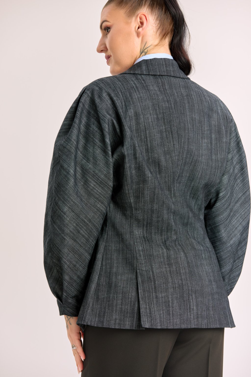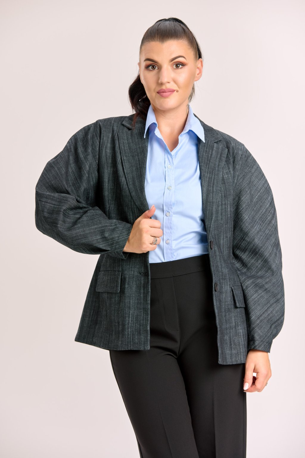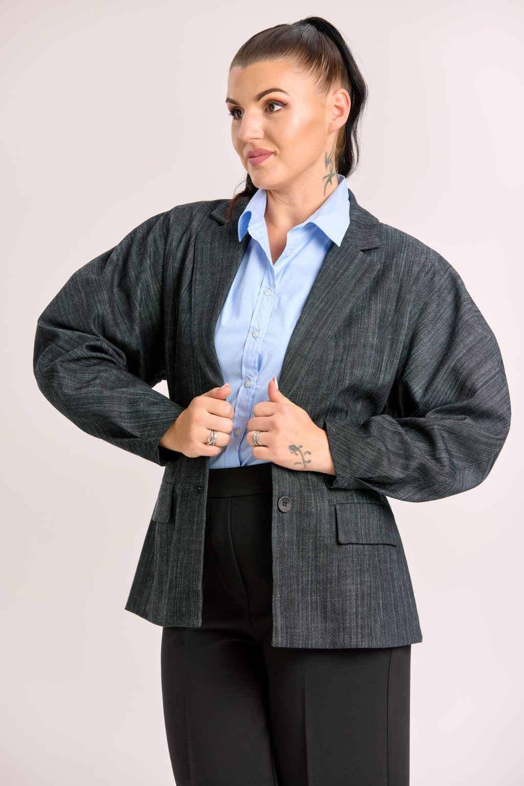 Dámské riflové sako značky Imperial je originální kousek, který vyniká moderním střihem a nadčasovým stylem. Zaujme zejména volnějšími rukávy se spadlým ramenem, které nejen působí elegantně a zajímavě, ale zároveň poskytují maximální pohodlí a volnost při pohybu. Sako má klasický klopový límec, zapínání na knoflíky a praktické kapsy s patkou. Díky riflovému vzhledu jej snadno zkombinujete s kalhotami, šaty i sukní a skvěle vypadá také doplněné páskem v pase.