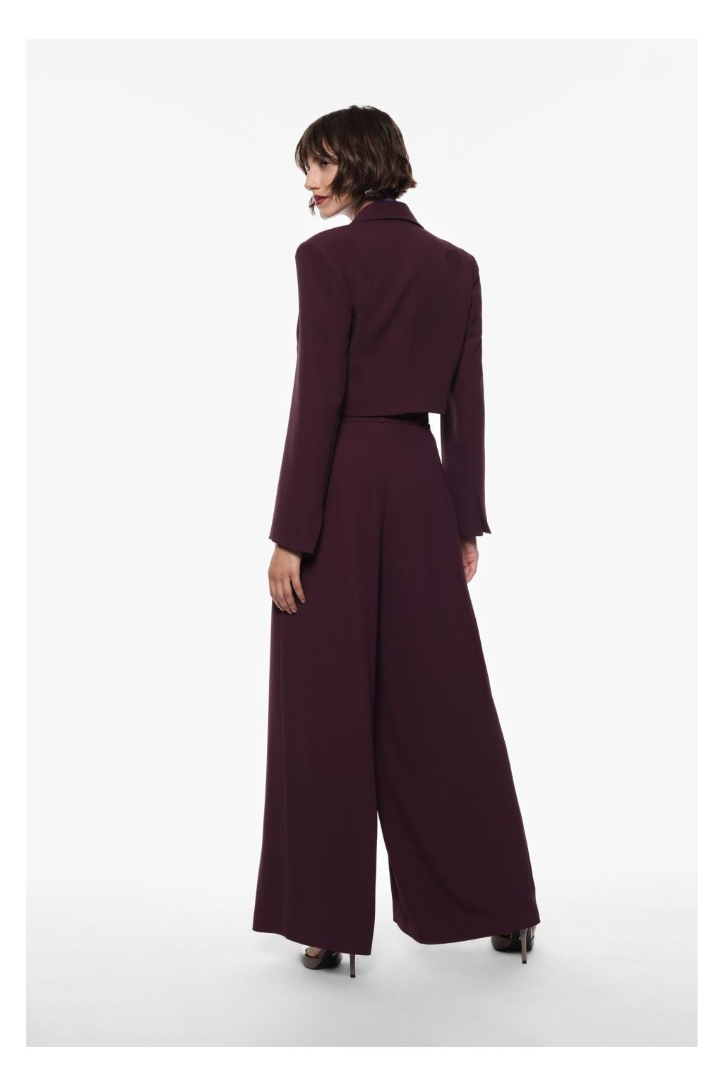 Dámské černé kalhoty Imperial v širokém elegantním střihu jsou navržené tak, aby podtrhly ženskou siluetu a zároveň poskytly maximální komfort. Vysoký pas opticky prodlužuje nohy a díky odšitým skladům v oblasti břicha nepřidává na objemu, takže působí velmi lichotivě. Splývavý materiál dodává kalhotám vzdušnost a lehkost, takže se hodí jak na každodenní nošení, tak i na společenské příležitosti. Stylový pásek s kovovou sponou je součástí modelu a dodává celku elegantní akcent. Kalhoty dokonale ladí s krátkým sakem Imperial do pasu, se kterým tvoří moderní a sofistikovaný komplet.