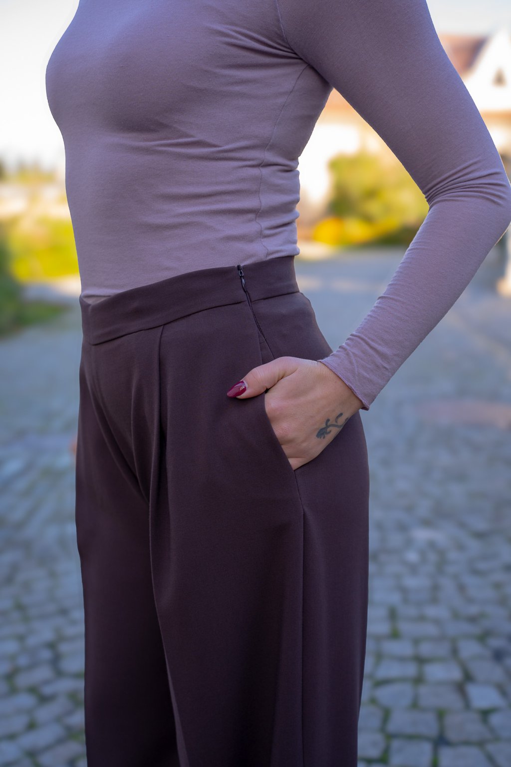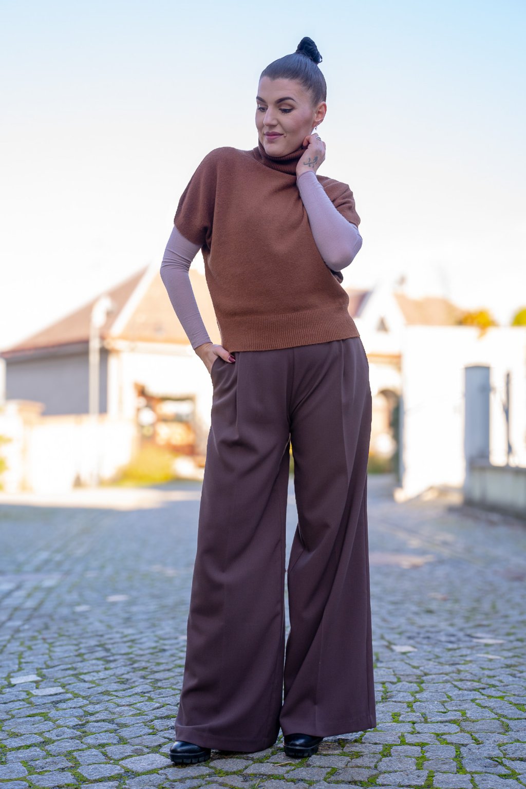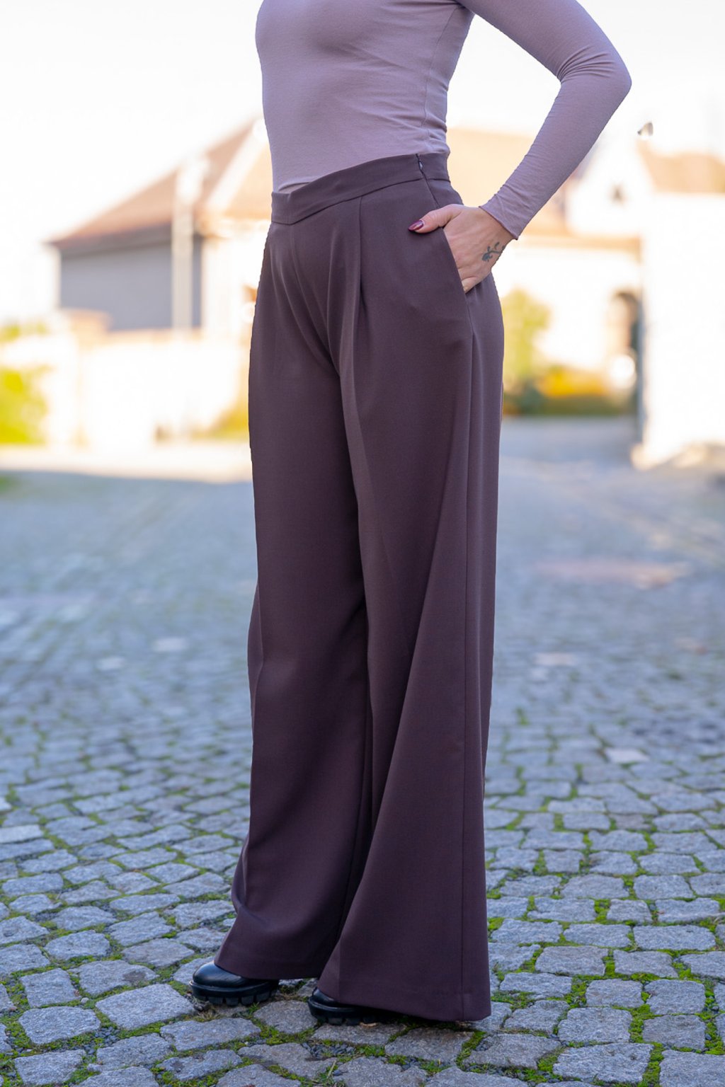 Dámské kalhoty značky Imperial Fashion jsou synonymem elegance a komfortu v jednom. Prémiový materiál s hladkým povrchem působí luxusně a zároveň je příjemný na dotek. Volný střih s dlouhými širokými nohavicemi vytváří dokonale splývavou siluetu, která lichotí každé postavě. Kalhoty mají vysoký pas s tvarovaným sedlem a zapínáním na boku, díky čemuž perfektně sedí a zvýrazňují ženskou linii. Nechybí praktické boční kapsy, které dodávají ležérní eleganci. Ideální kousek pro moderní ženy, které ocení styl i pohodlí.