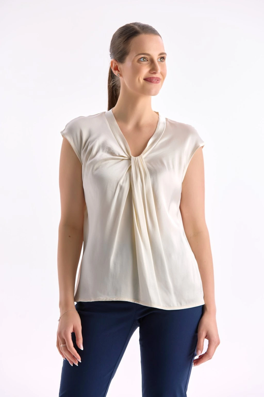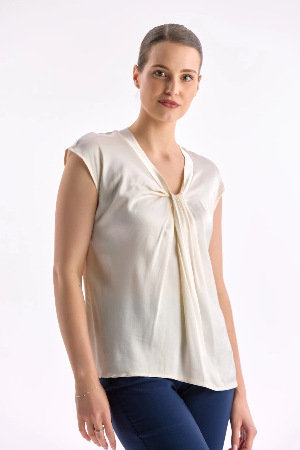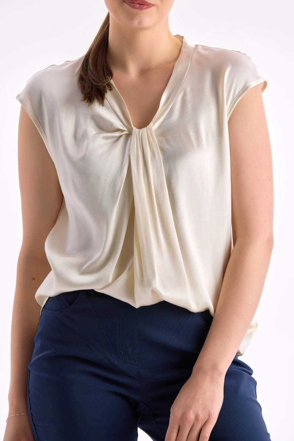 - efektní řasení a uzel ve výstřihu