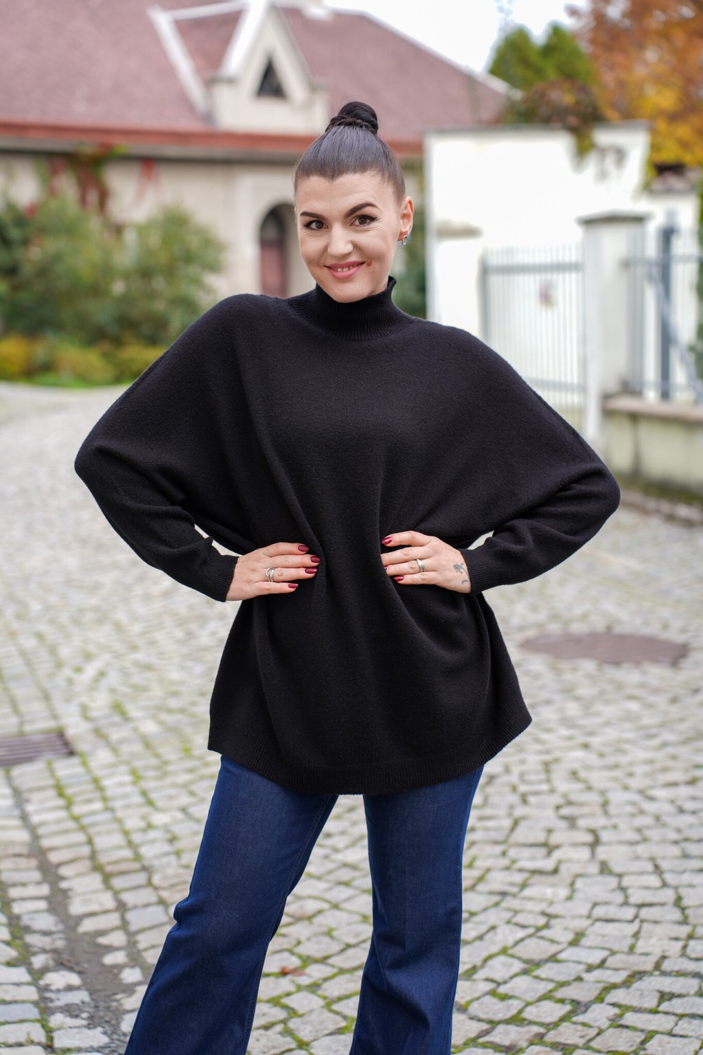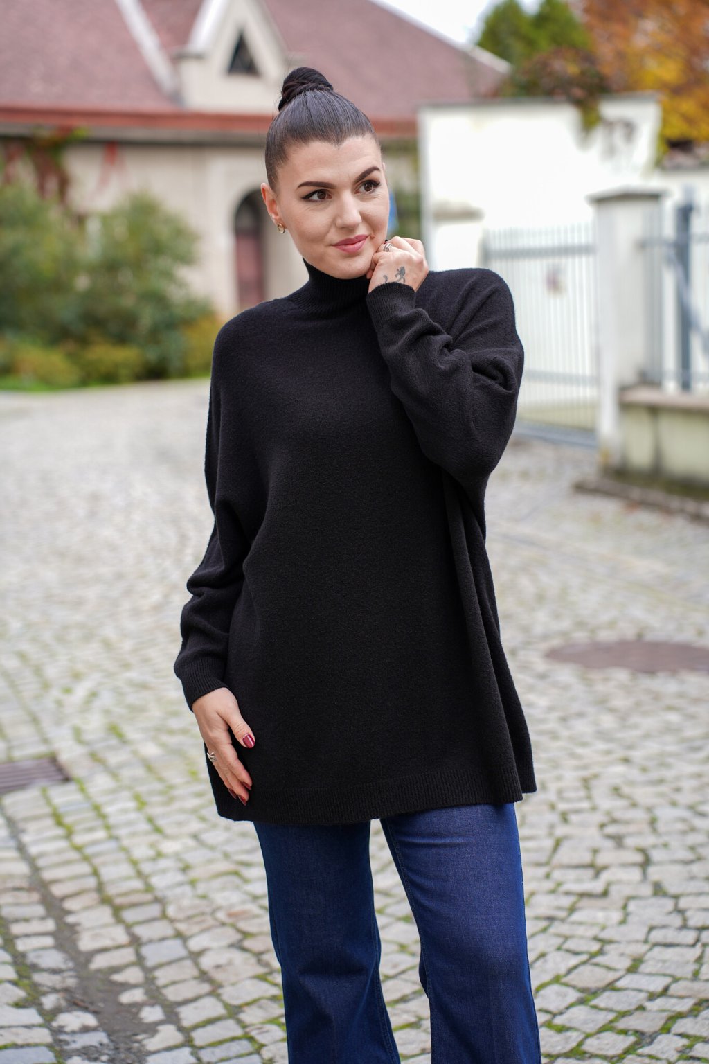 Naše modelka měří 176 cm a na sobě má univerzální velikost.