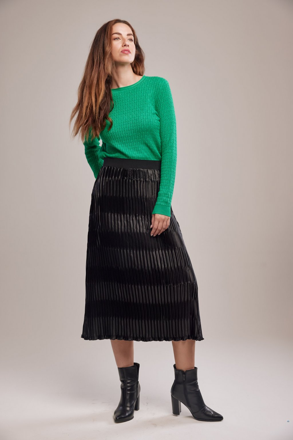 Naše modelka měří 172 cm a na sobě má velikost 36.
