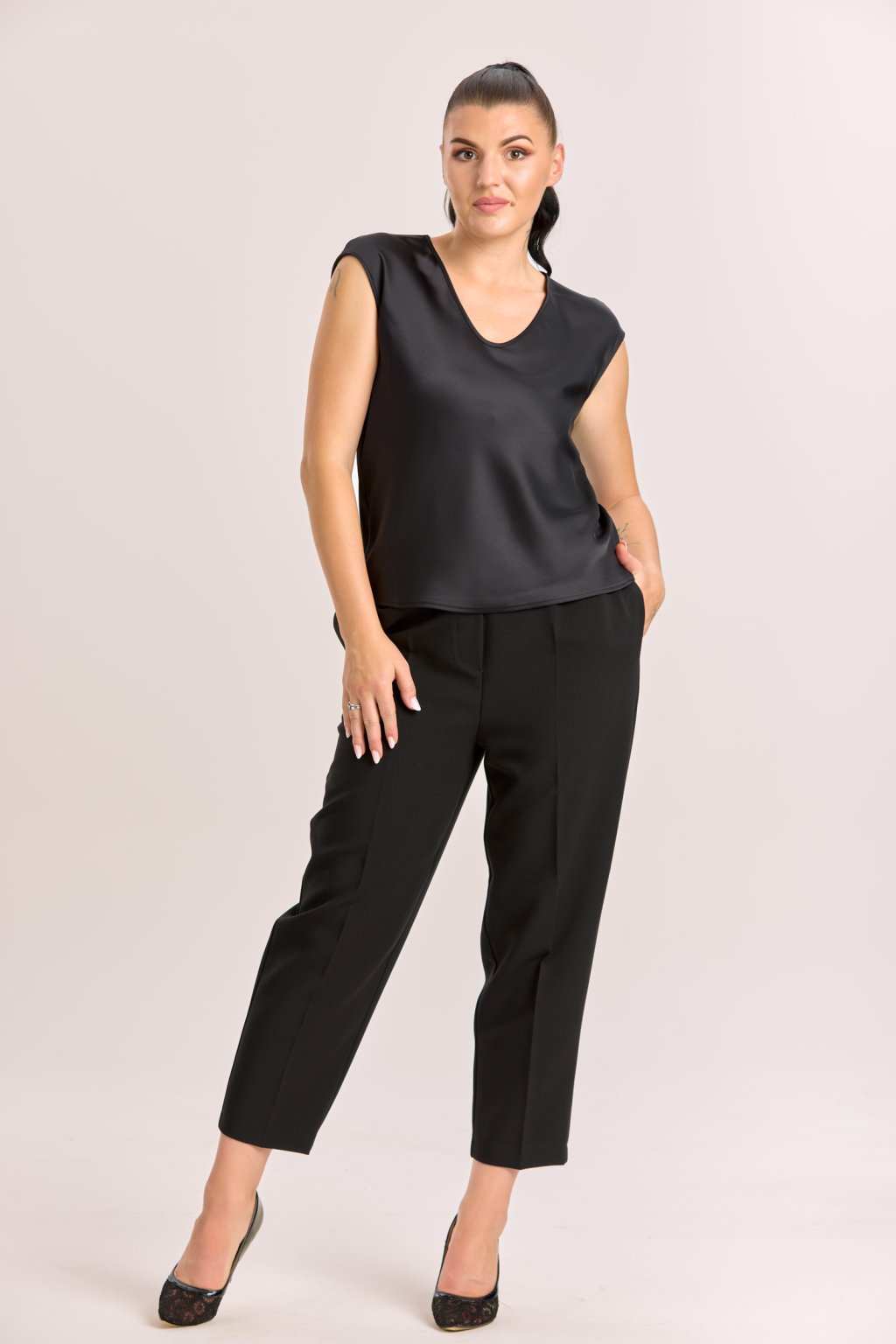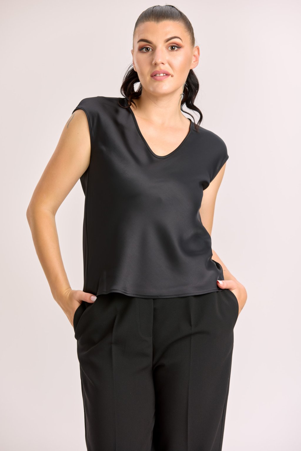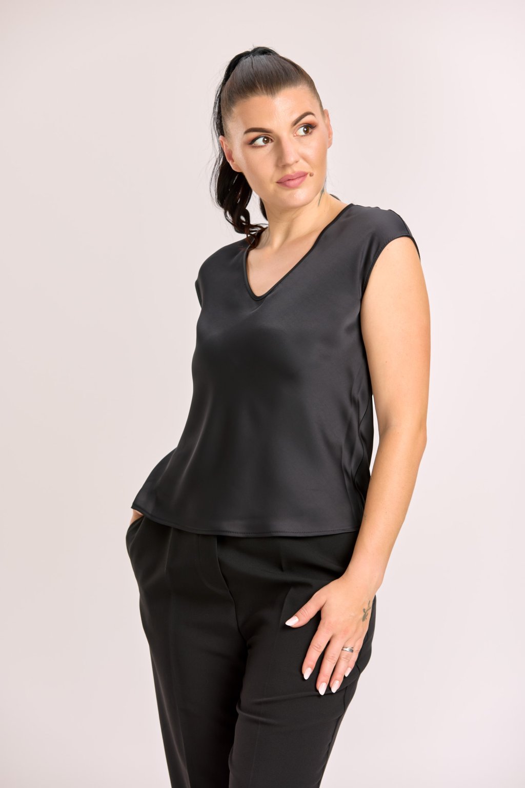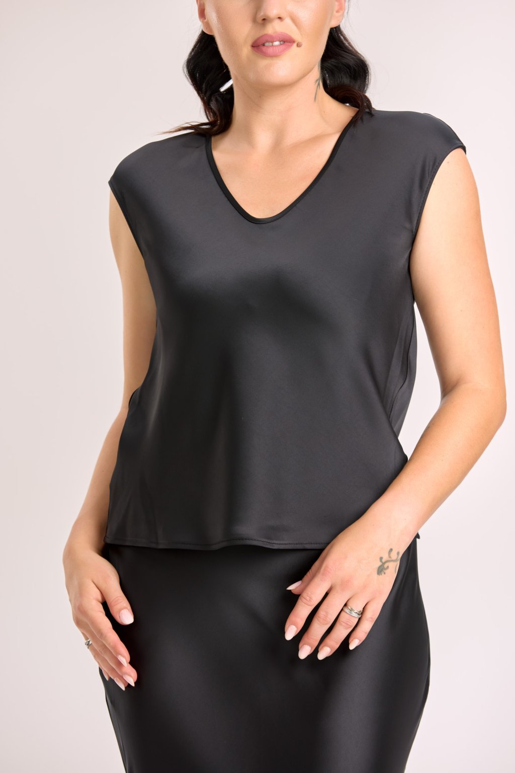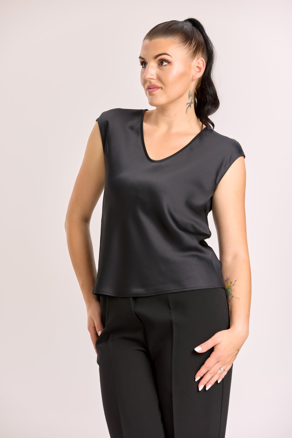Dámský saténový top Imperial je elegantní a nadčasový kousek, který vyniká svým jemným leskem a minimalistickým střihem. Hladký saténový materiál je příjemný na dotek a působí luxusně, zatímco bezrukávový střih s výstřihem do „V“ podtrhne ženskou siluetu a dodá outfitu sofistikovaný nádech. Top snadno sladíte se saténovou maxi sukní, elegantními kalhotami nebo pod sakem, a vytvoříte tak dokonale stylový look pro denní nošení i večerní příležitosti.
