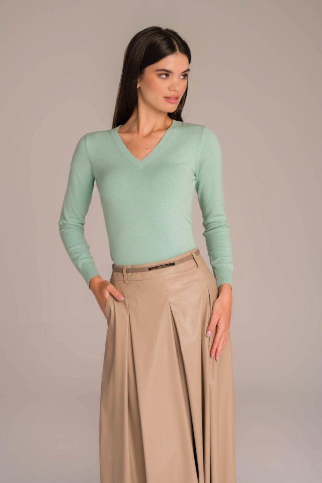 Svetřík je lehký, ale hřejivý, takže se skvěle hodí jak na běžné denní nošení, tak i do kanceláře nebo na volnočasové příležitosti. Díky pružnému materiálu se krásně přizpůsobí postavě a snadno se kombinuje – ať už s elegantní sukní, kalhotami nebo džínami.