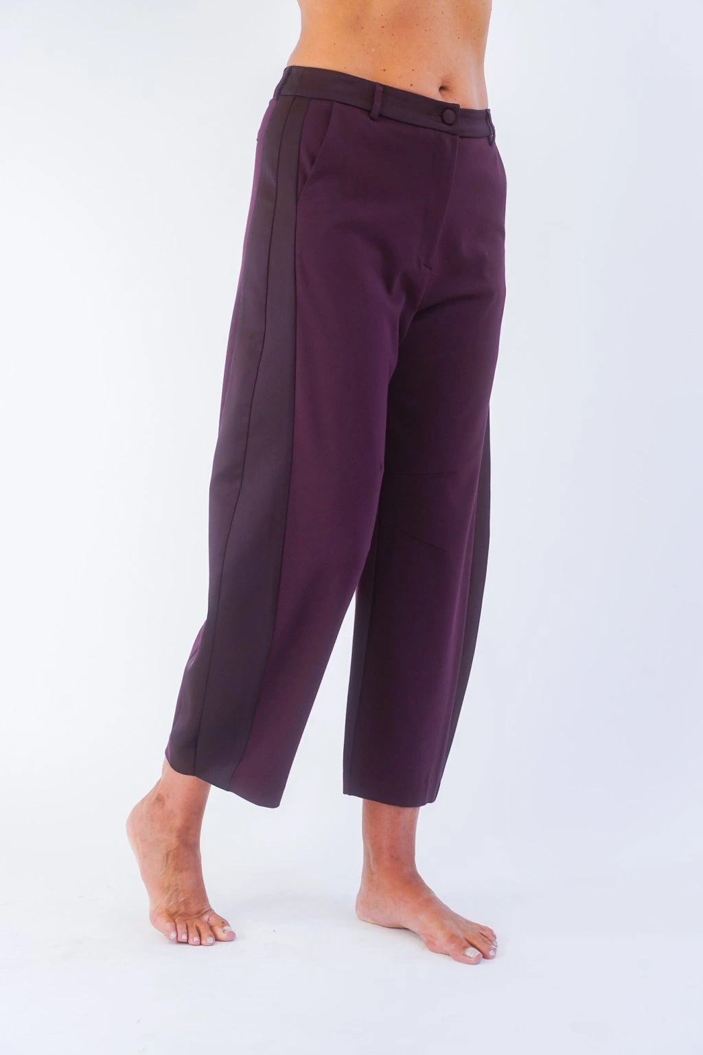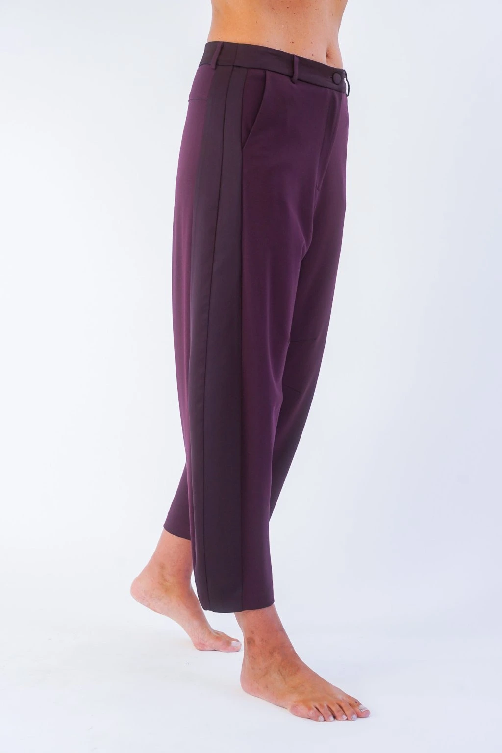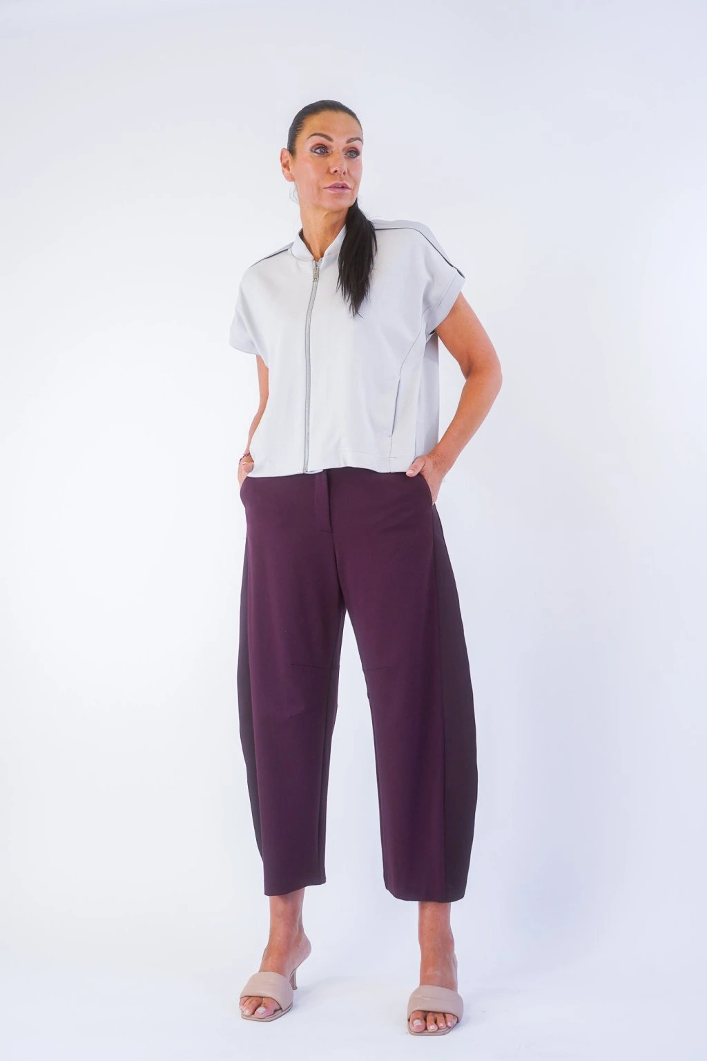Dámské teplákové kalhoty italské značky Imperial představují moderní a stylový kousek, který spojuje pohodlí sportovního stylu s elegantním minimalistickým designem. Tyto dámské kalhoty v trendy barelovém střihu (barrel leg) zaujmou svým volnějším tvarem v oblasti boků a stehen, který se směrem ke kotníkům jemně zužuje a vytváří tak velmi lichotivou siluetu. Příjemný, hladký a lehce splývavý materiál zajišťuje maximální komfort při nošení a zároveň působí upraveně a sofistikovaně. Kalhoty mají klasické zapínání na knoflík a zip, poutka na pásek a čisté linie bez zbytečných detailů, což podtrhuje jejich nadčasový charakter. Díky své univerzálnosti se skvěle hodí jak pro volnočasové outfity, tak i pro elegantnější kombinace například se sakem nebo halenkou.